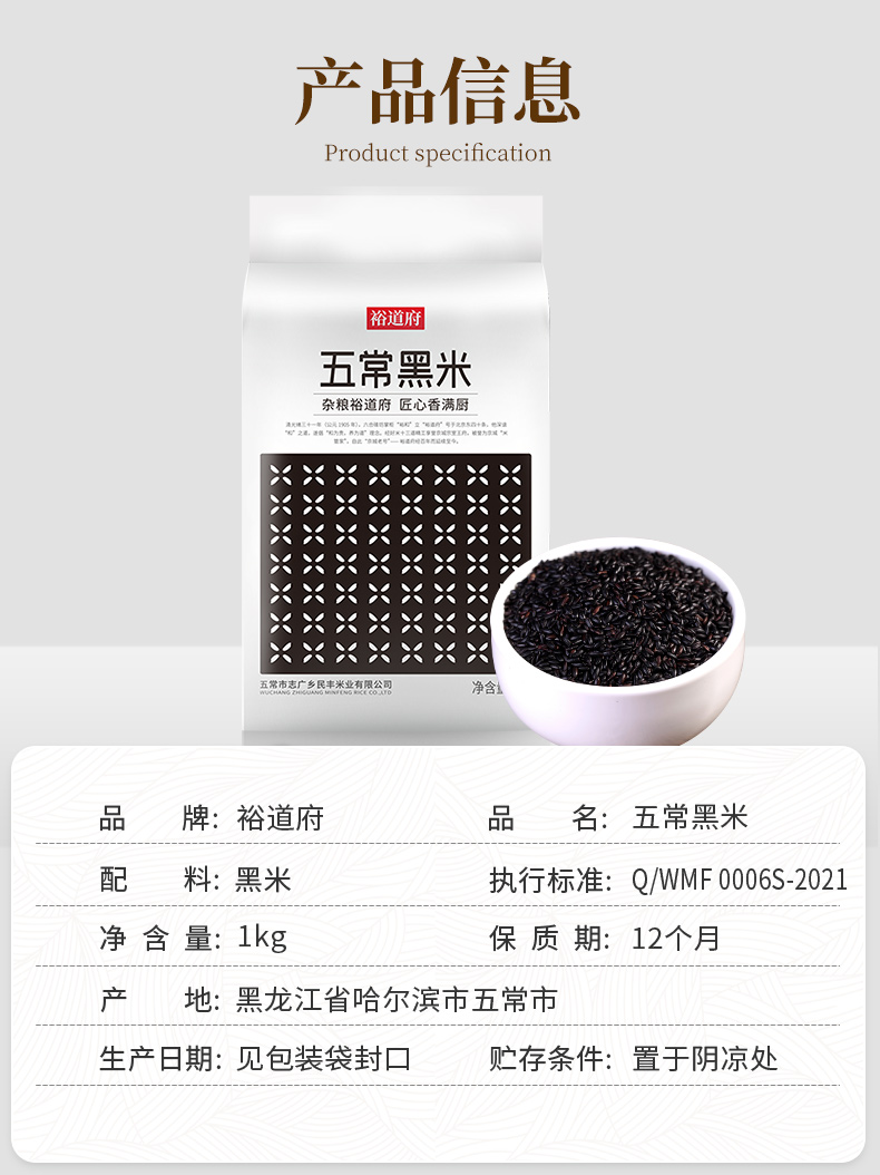 裕道府 五常黑米 五谷杂粮 1kg 白色(单位:袋)