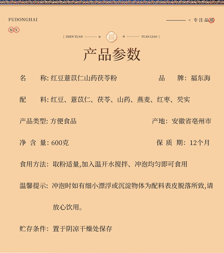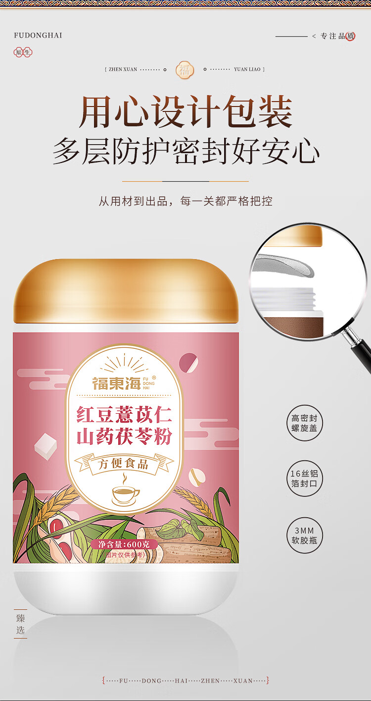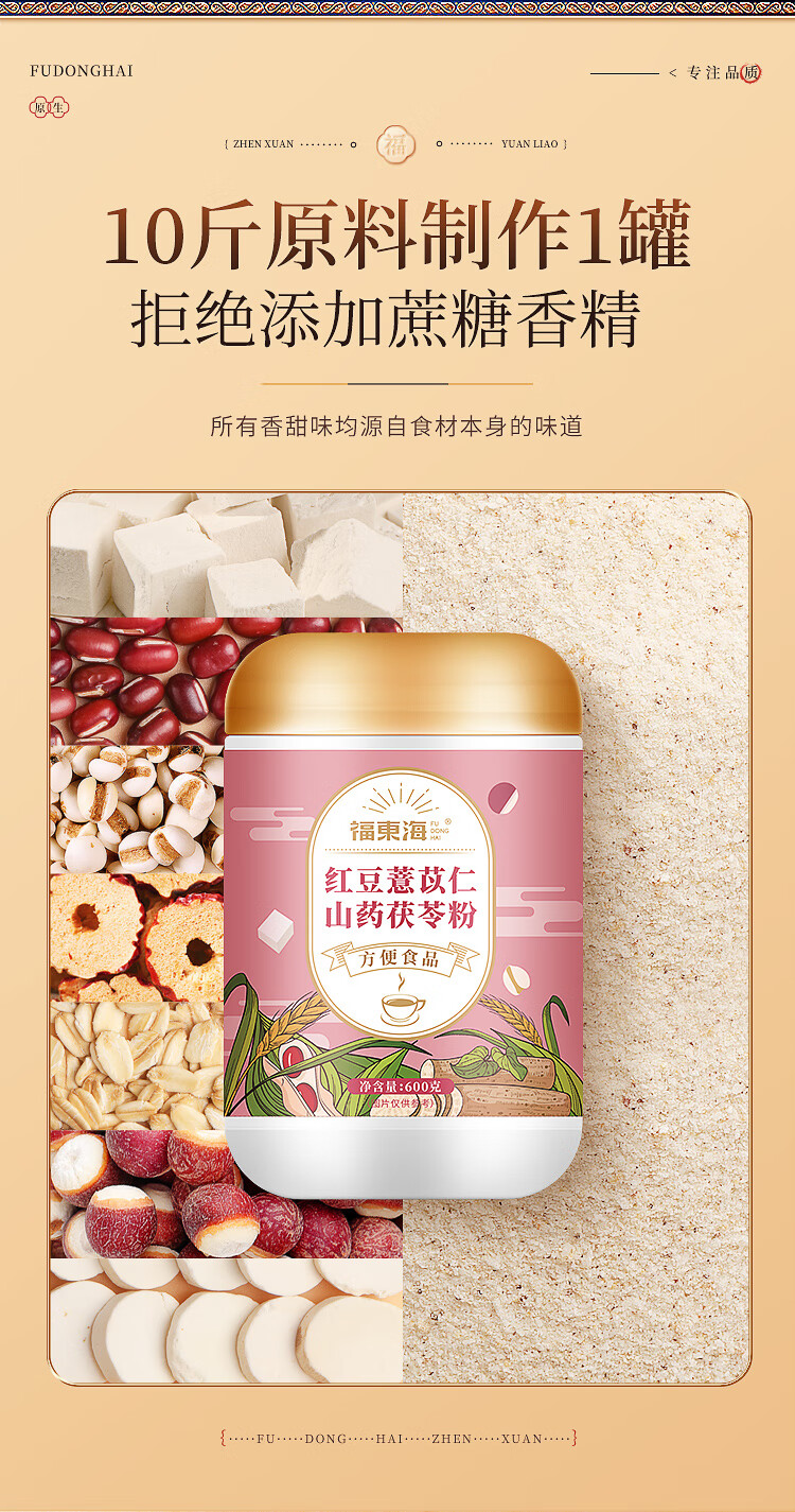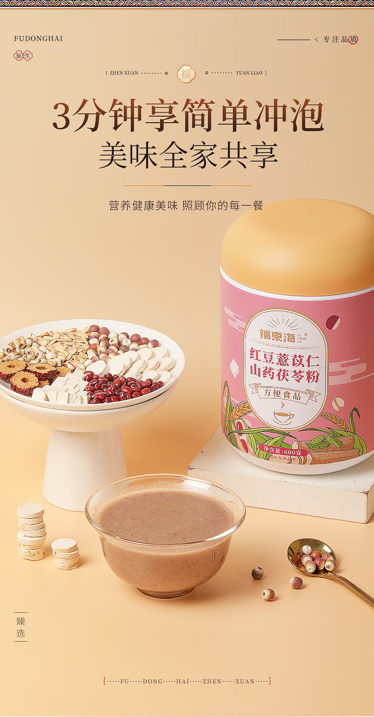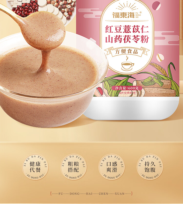 福东海(fudonghai) 红豆薏米山药茯苓粉 营养早餐 600g 粉色(单位:罐)