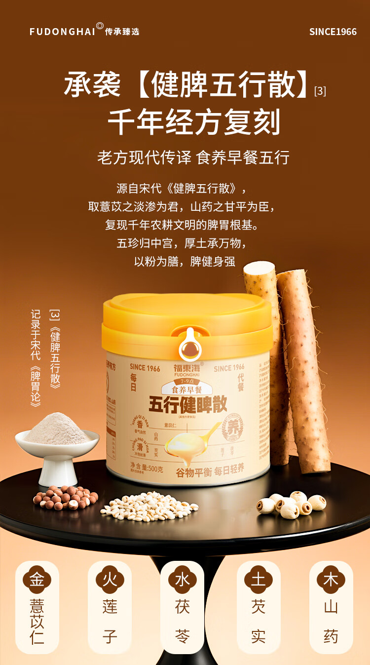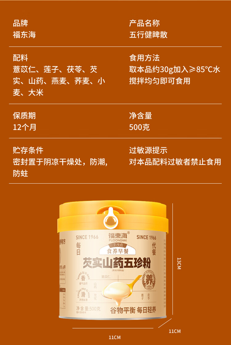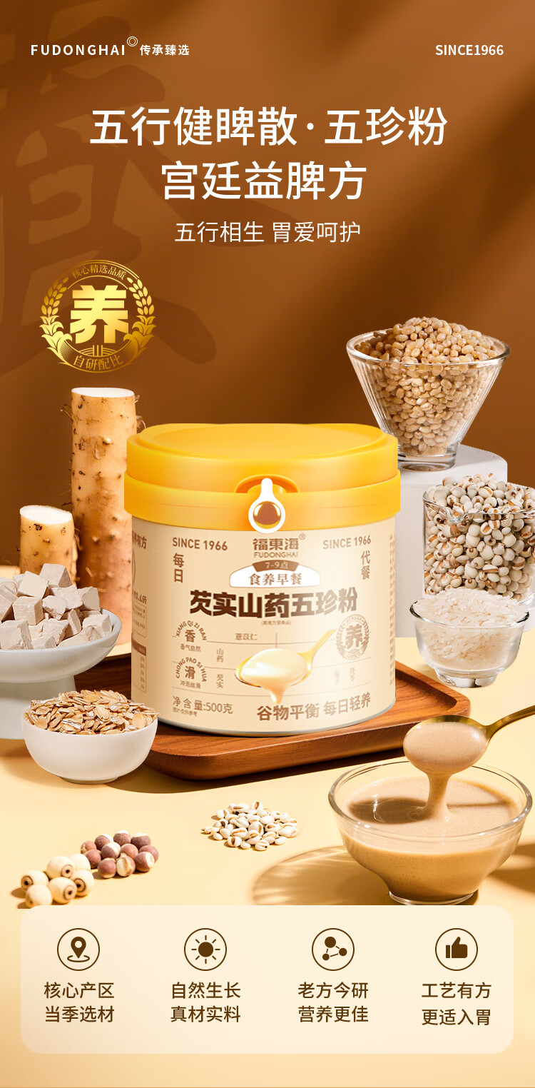 福东海(fudonghai) 芡实山药五珍粉 五行健睥散 500g 黄色(单位:罐)