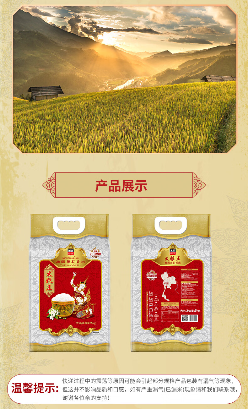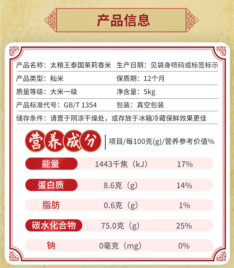 太粮 泰国茉莉香米 长粒香软 5kg 红色(单位:袋)