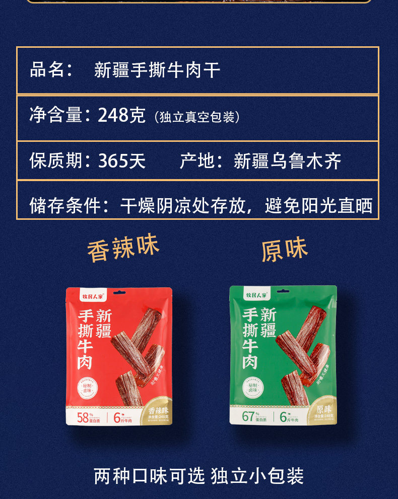 牧民人家 新疆手撕牛肉干 原味 248g 绿色(单位:袋)