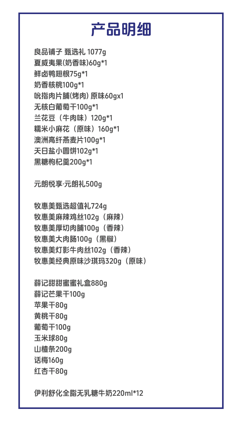 良品铺子 /元朗/伊利/牧惠美/薛记 坚果糕点果干牛奶组合 3181g+2640ml 混色(单位:组)