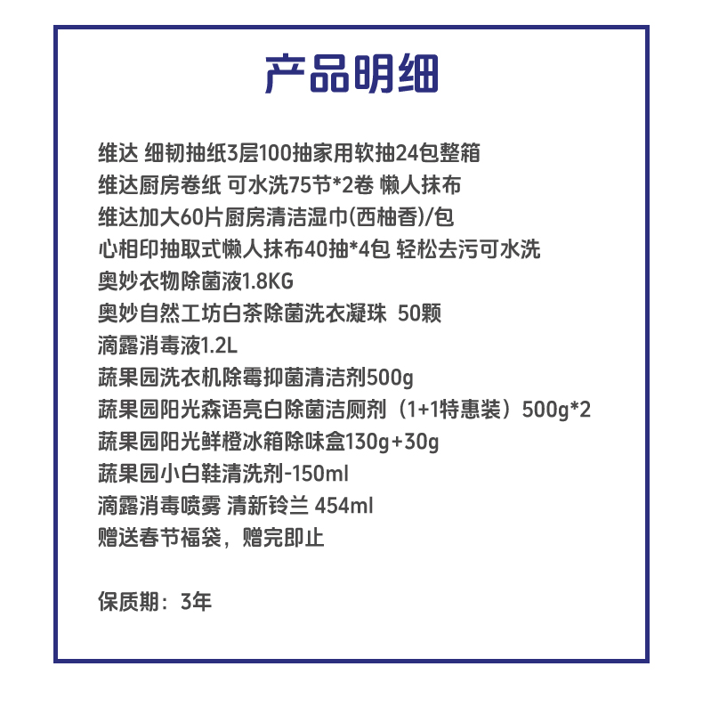 维达 /奥妙/滴露/蔬果园 纸巾净衣家清清洁 组合 29包+2卷+50颗+3460g+604ml(含春节福袋) 混色(单位:组)