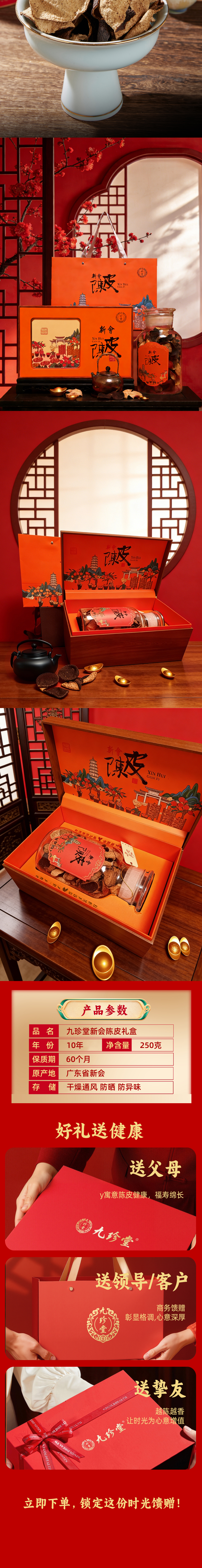 九珍堂 新会陈皮 经典礼盒 250克(十年) 橙色(单位:盒)