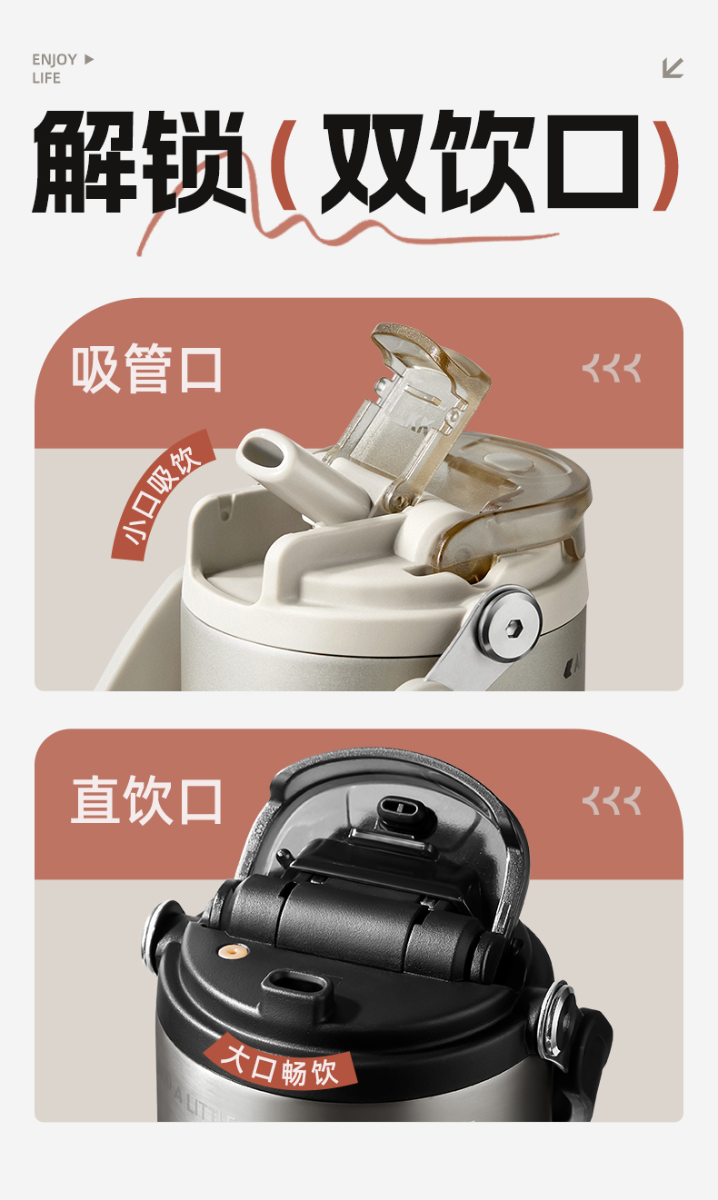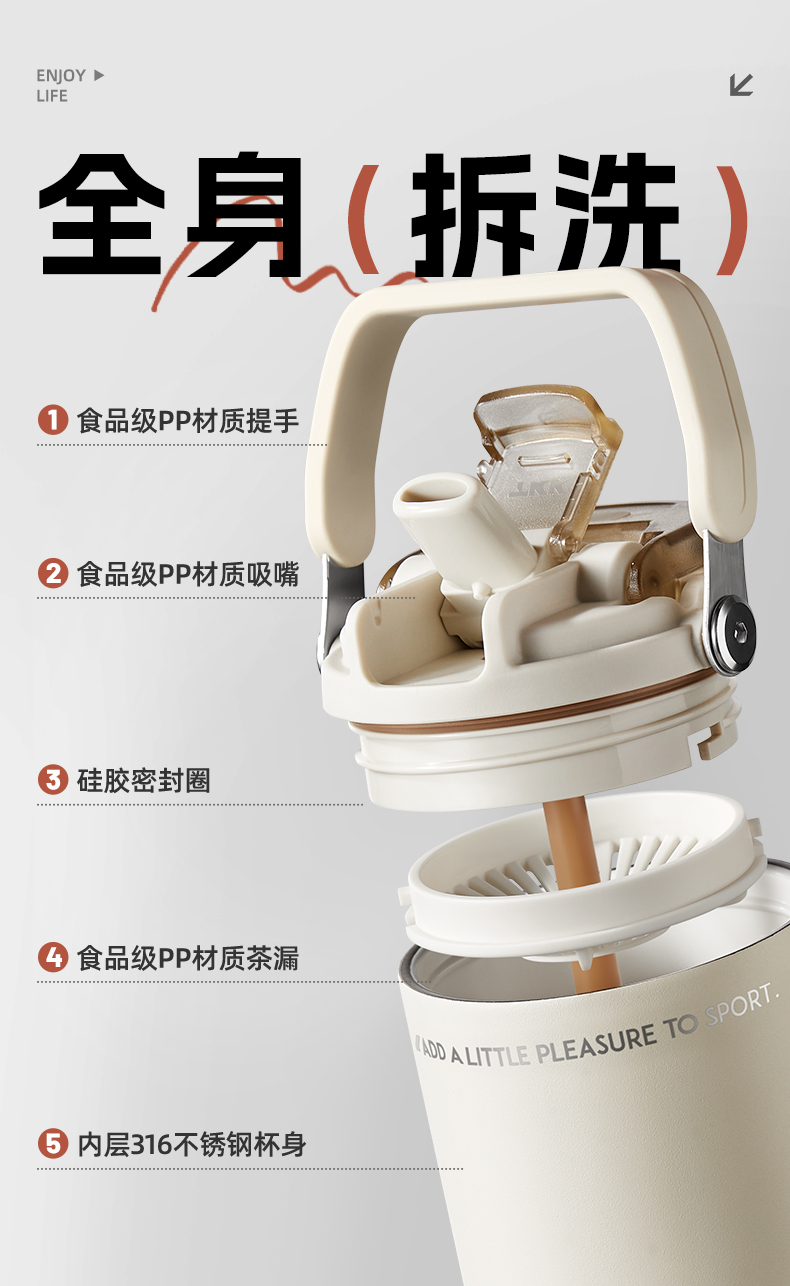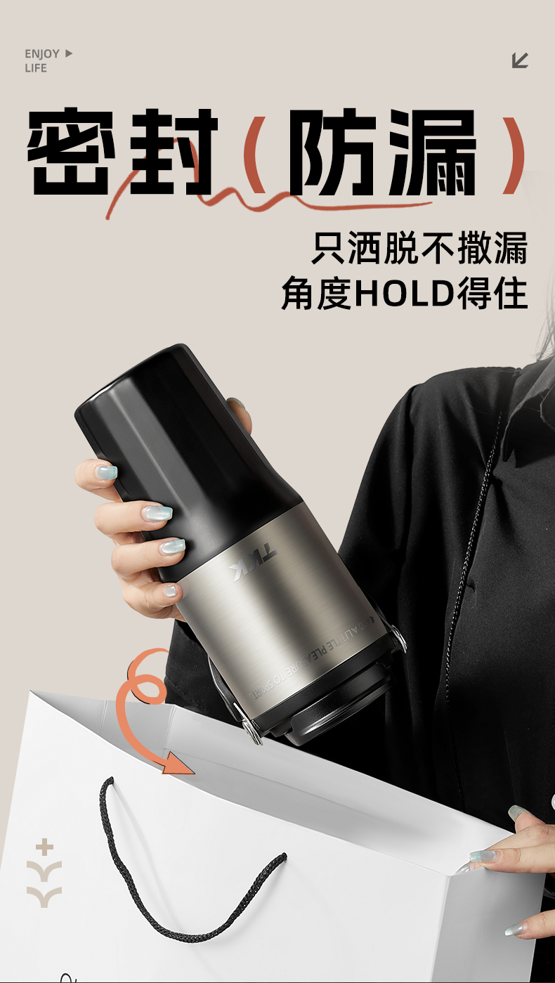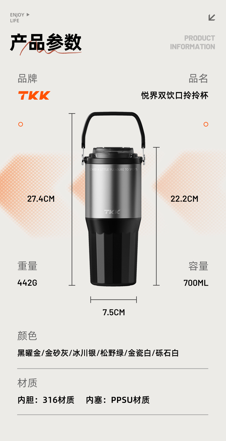 TKK 悦界双饮口拎拎杯 TKK-2039 700ml 白色(单位:个)
