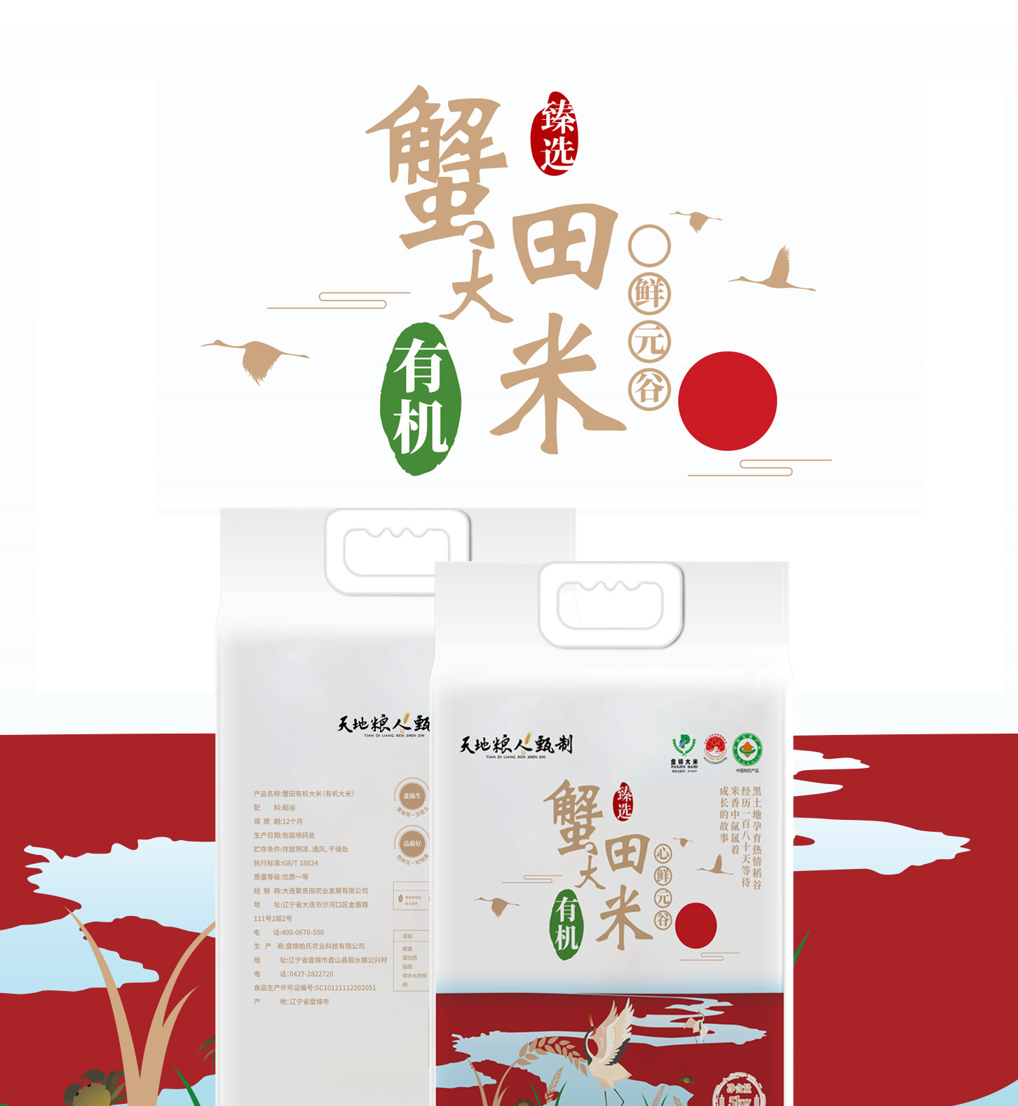 天地粮人 甄制有机大米 盘锦蟹田 5kg 白色(单位:袋)