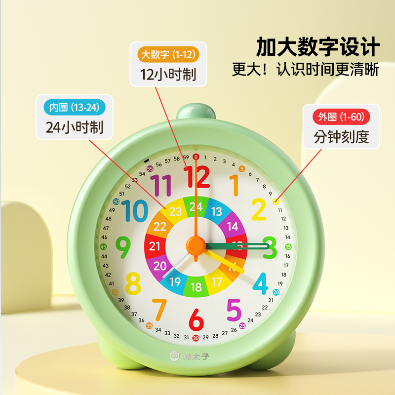 猫太子 启蒙闹钟学生专用起床神器2026新款儿童男静音时钟学习专用 10141M1537B 0.19KG 白色(单位:盒)