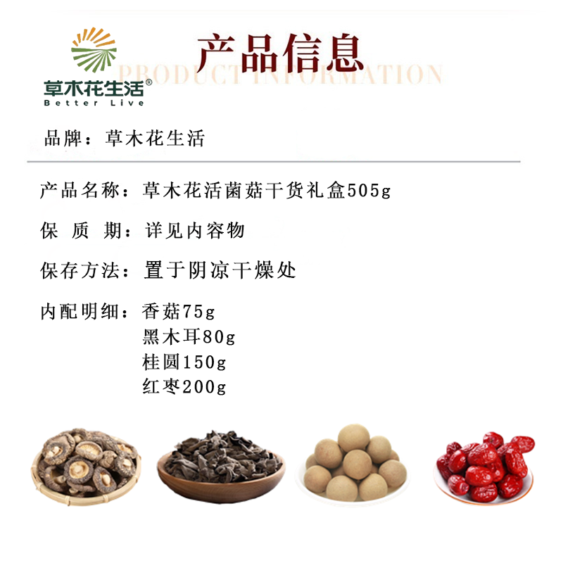 草木花生活 菌菇干货礼盒 天然农产品营养丰富 505g 红色(单位:盒)