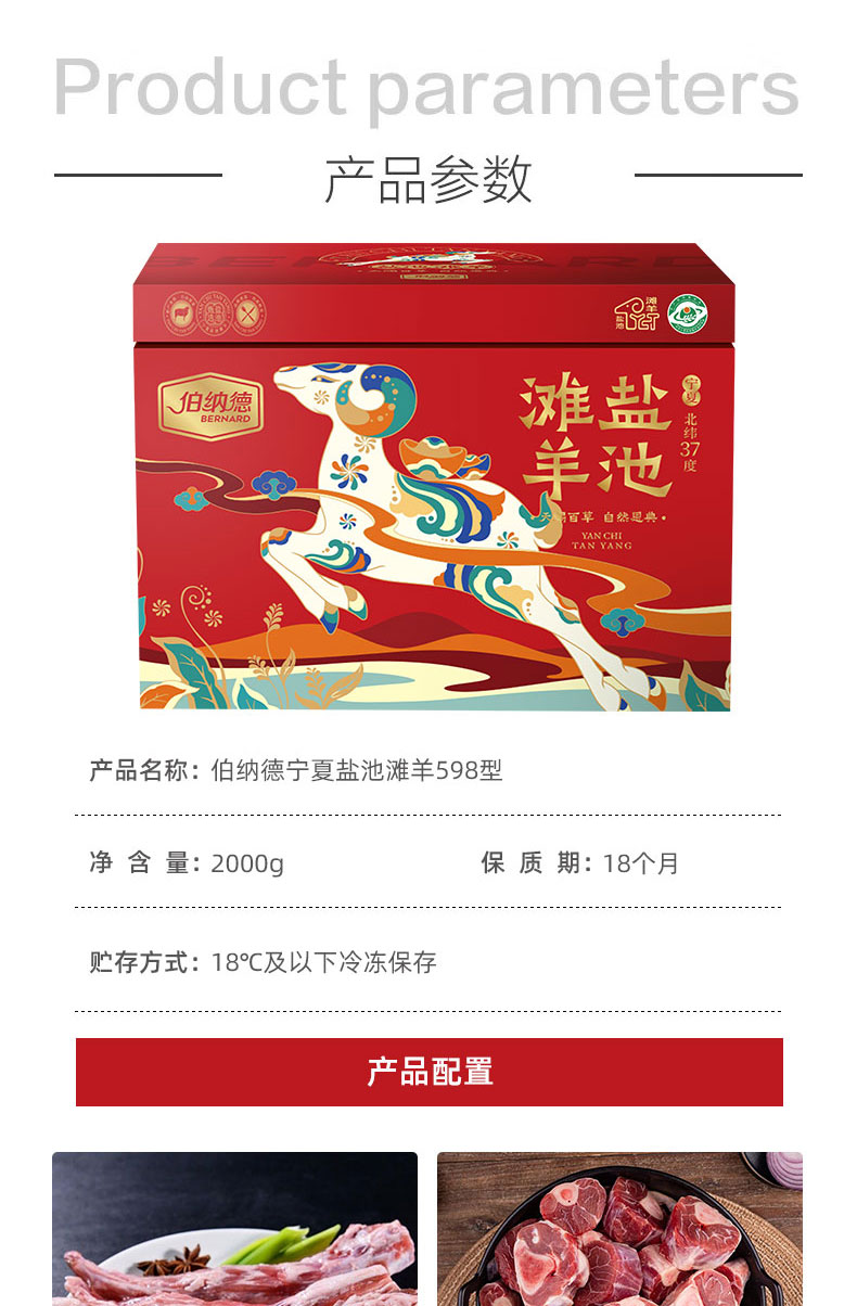 伯纳德(bonade) 盐池滩羊礼盒 598型 2000g 红色(单位:盒)