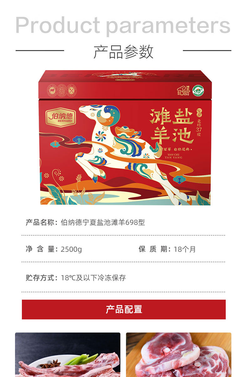 伯纳德(bonade) 盐池滩羊礼盒 698型 2500g 红色(单位:盒)