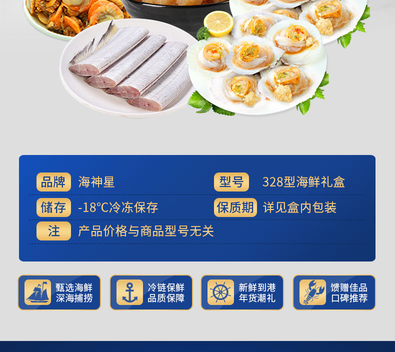 海神星 海神星环球臻选海鲜礼盒 328型 1600g 水蓝色(单位:盒)
