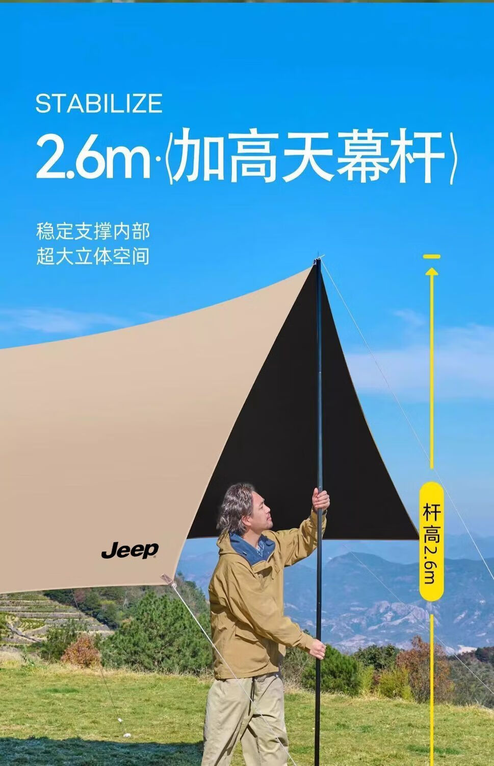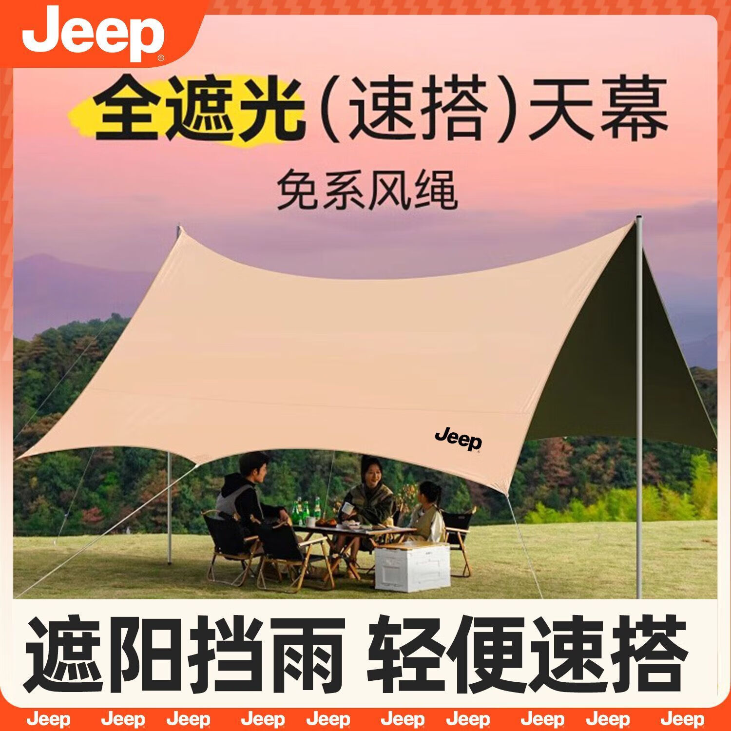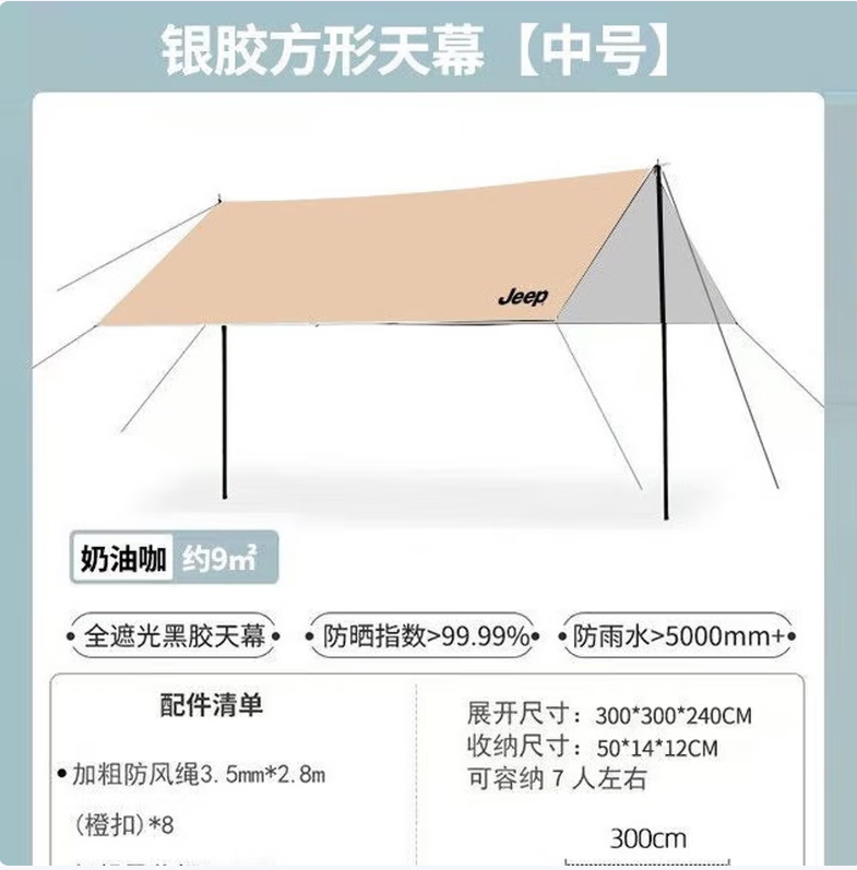 吉普(JEEP) 四角银胶天幕3*3(JXP-TM7-S) P940NBU151 3*3m 奶茶杏(单位:件)