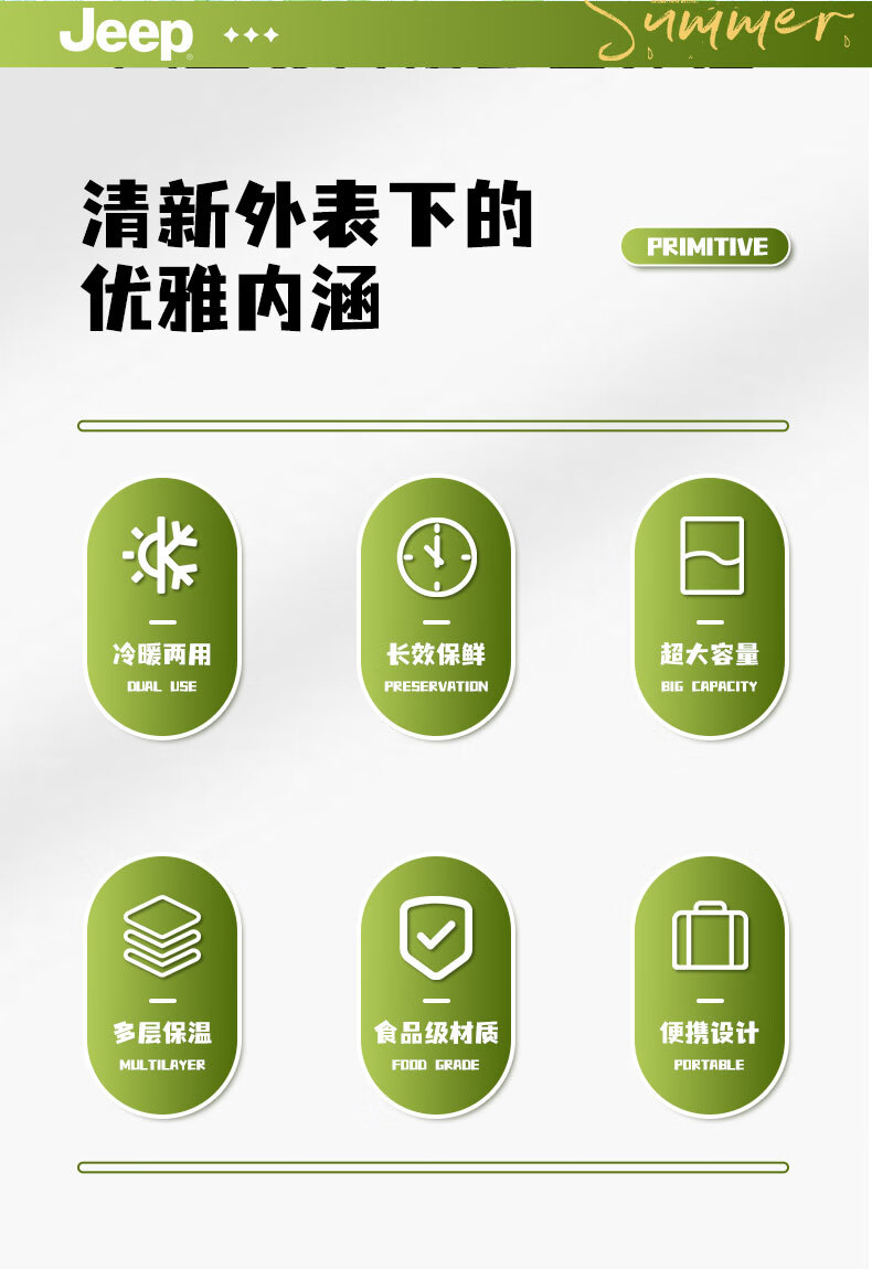吉普(JEEP) 显温款保温箱JXP-SXBWX-ZLL-8L P950NBB004 8L 绿色(单位:个)