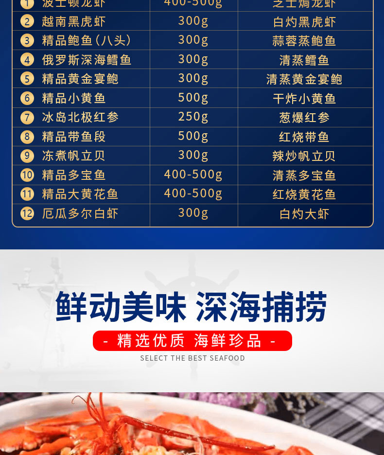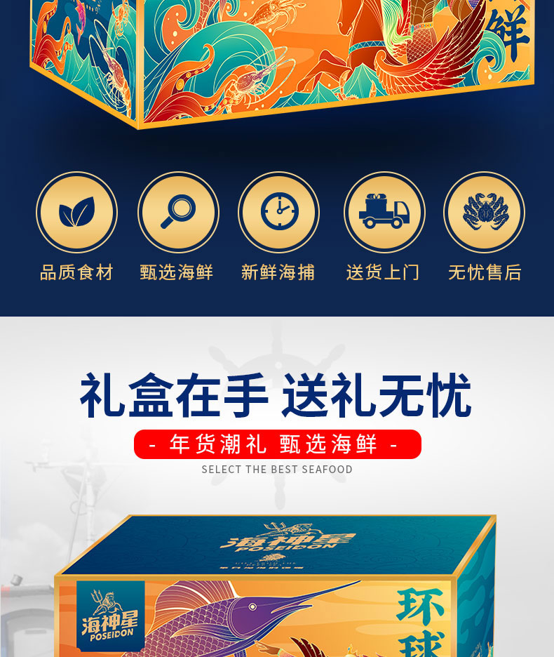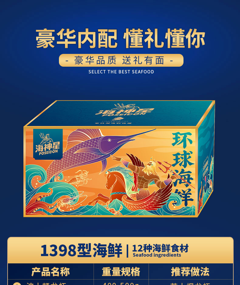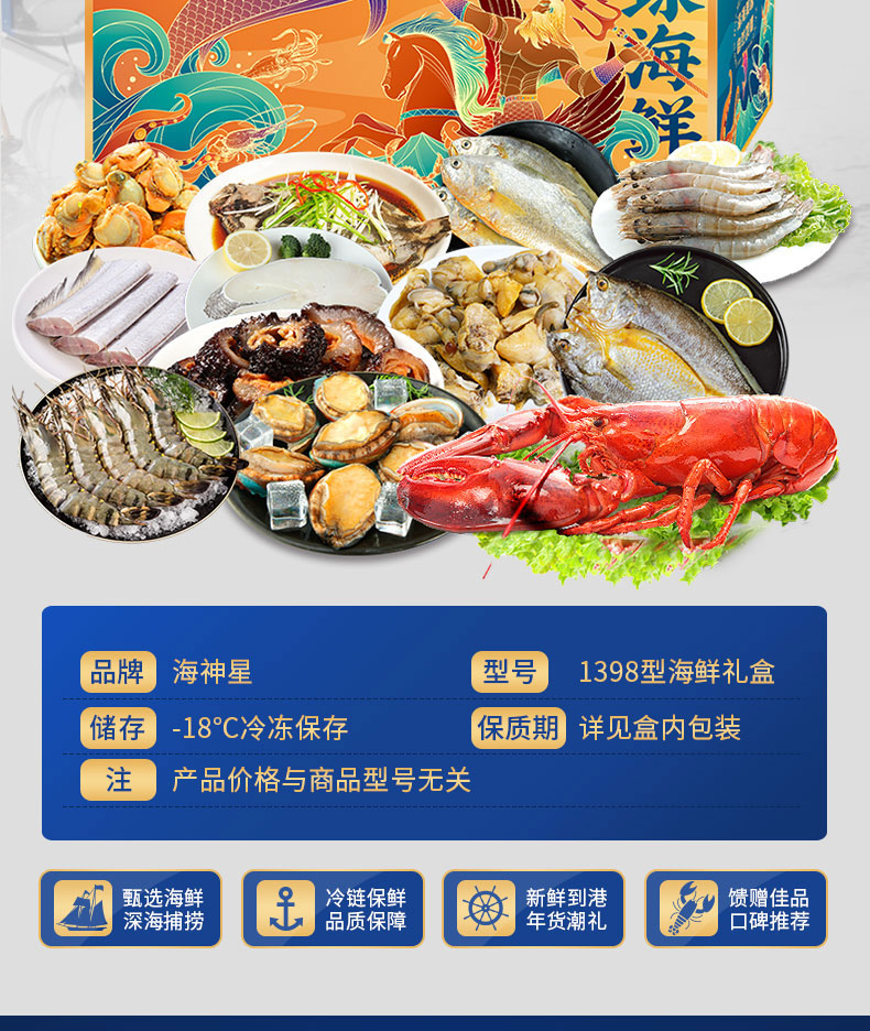 海神星 海神星环球臻选海鲜礼盒 1398型 4400g 水蓝色(单位:盒)