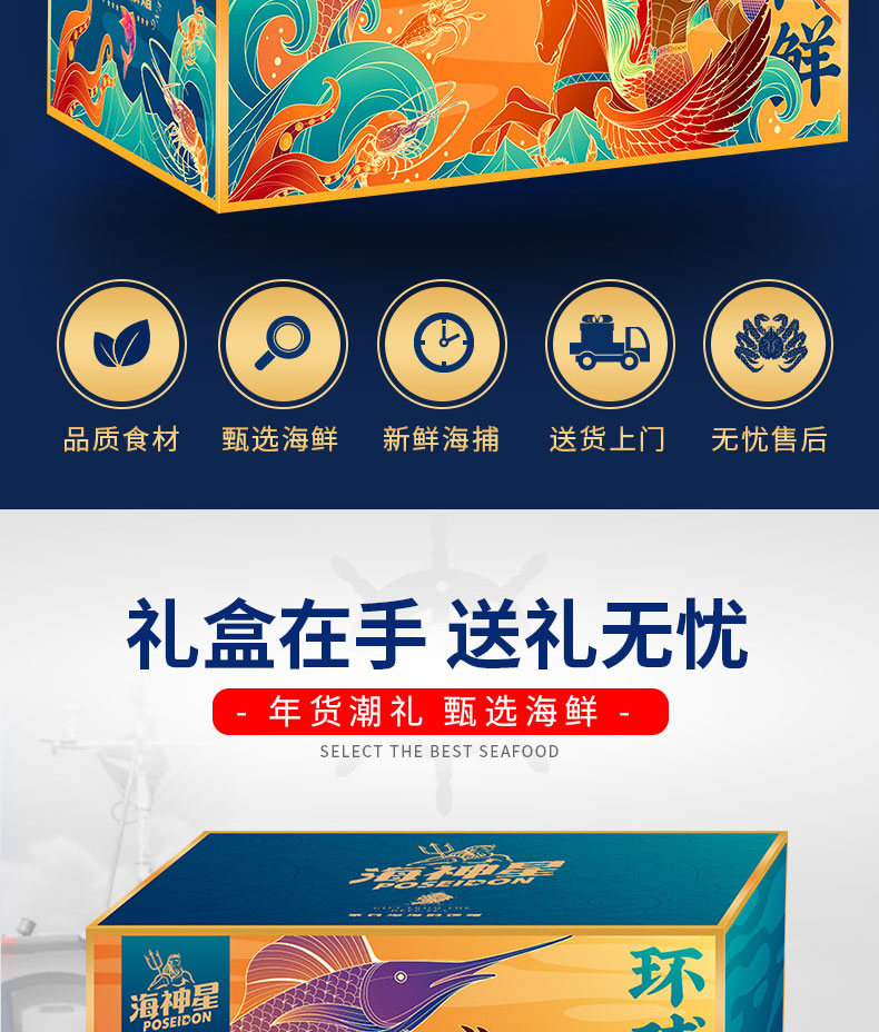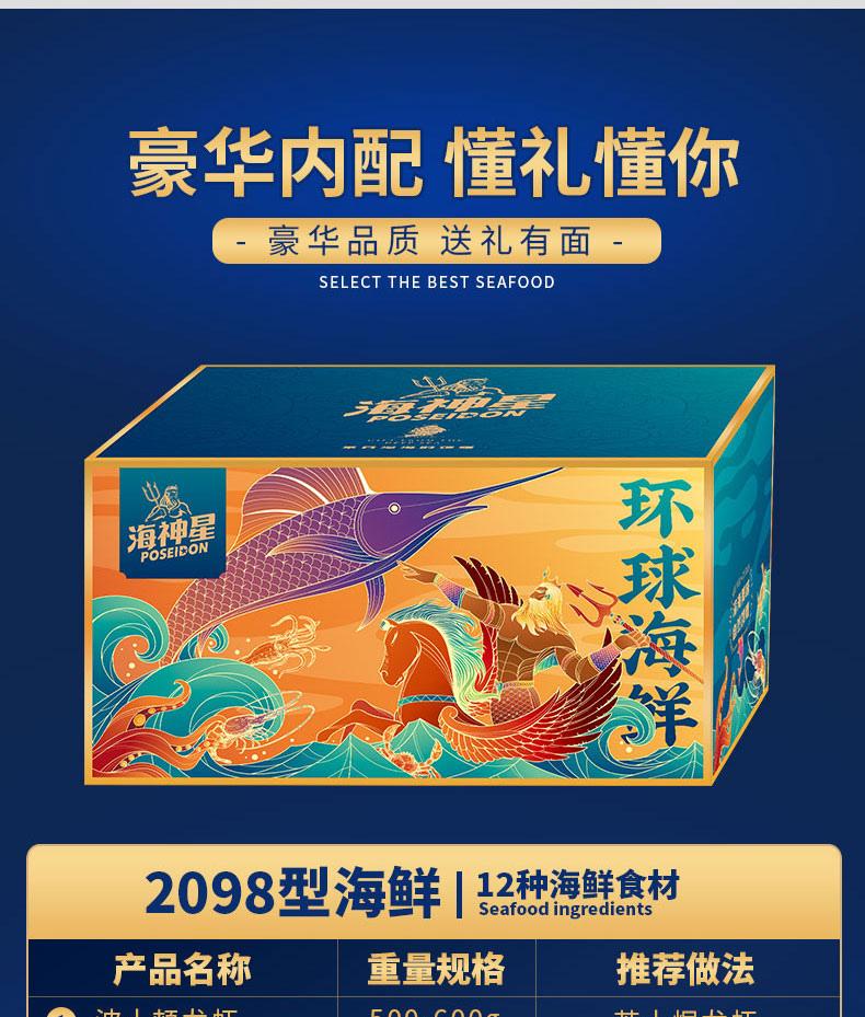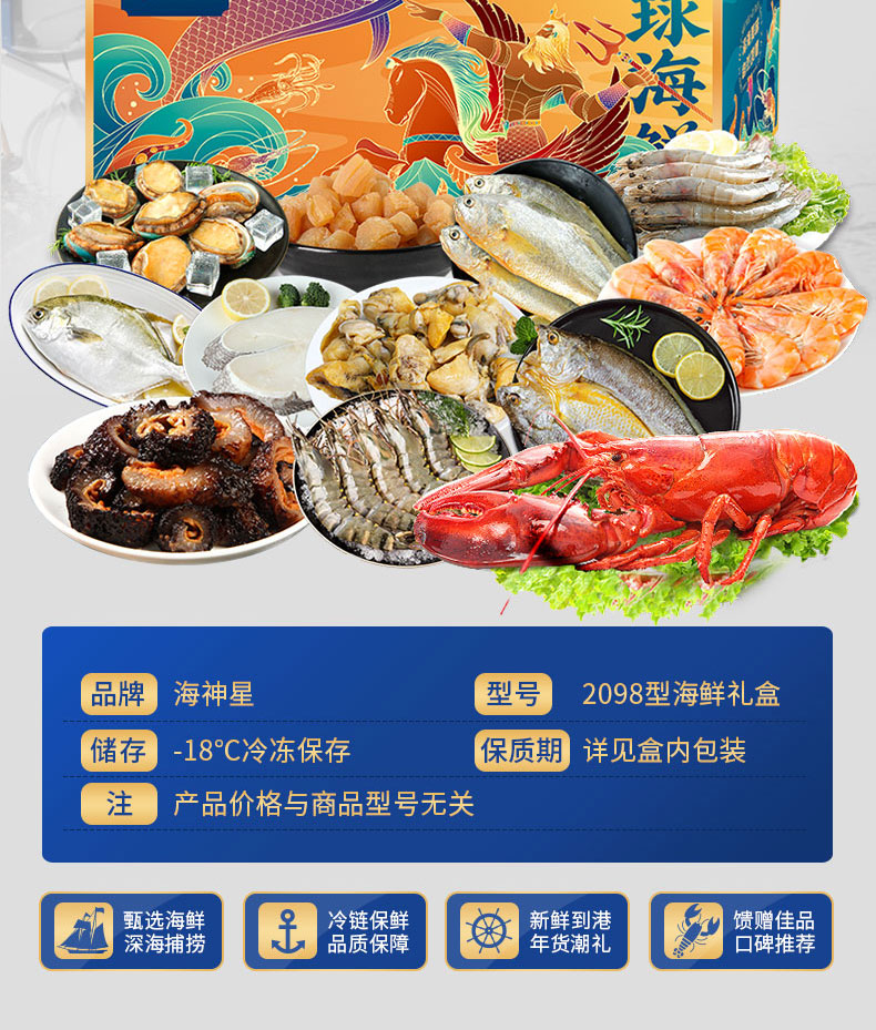 海神星 海神星环球臻选海鲜礼盒 2098型 4250g 水蓝色(单位:盒)