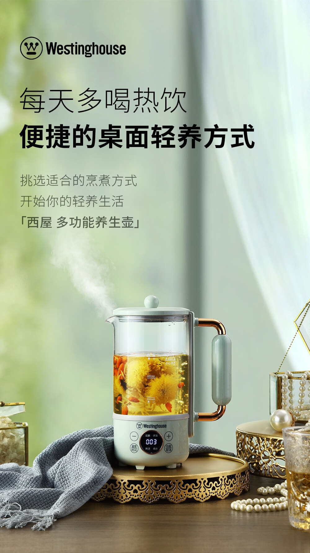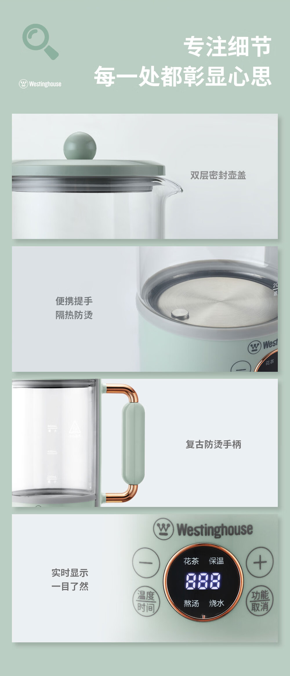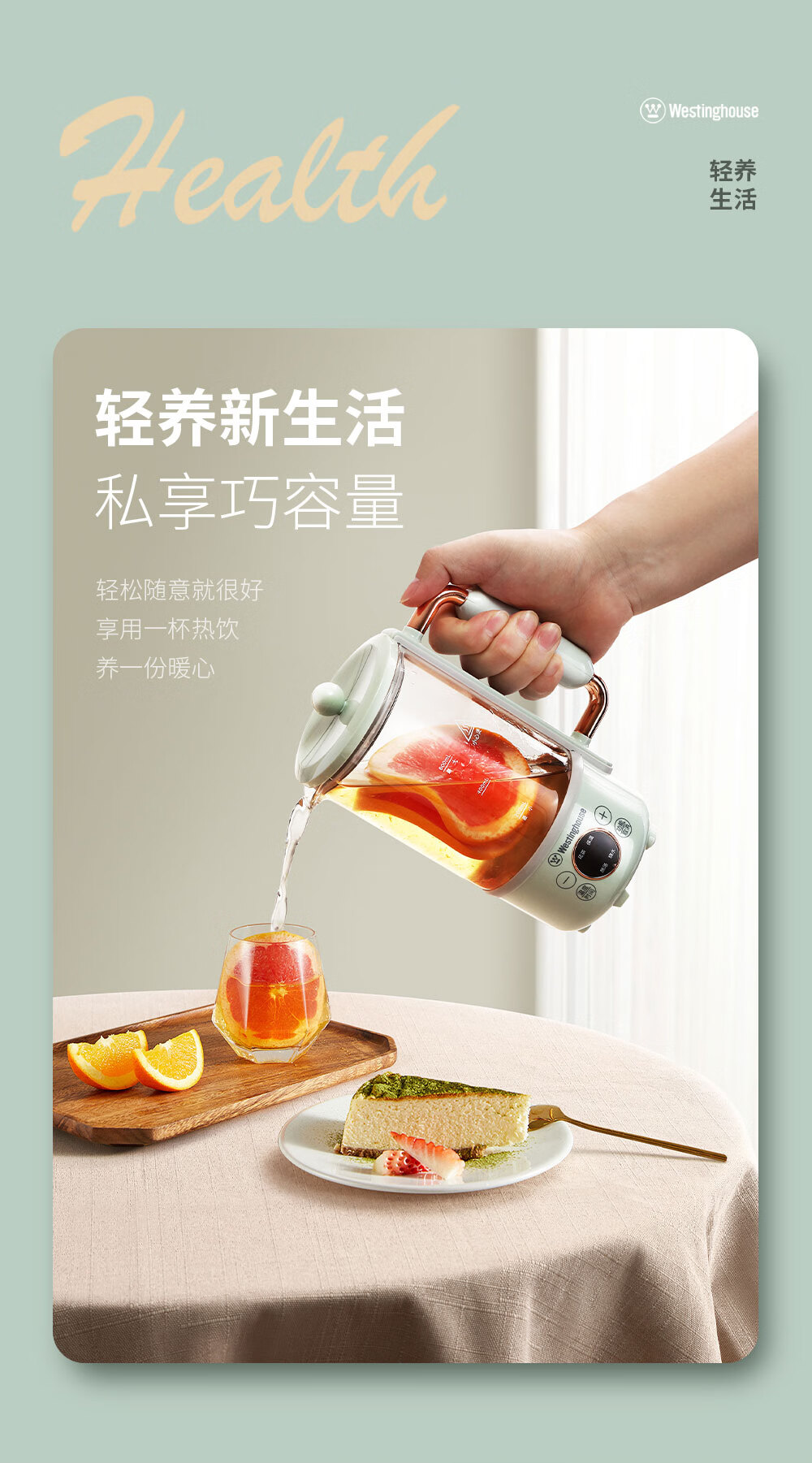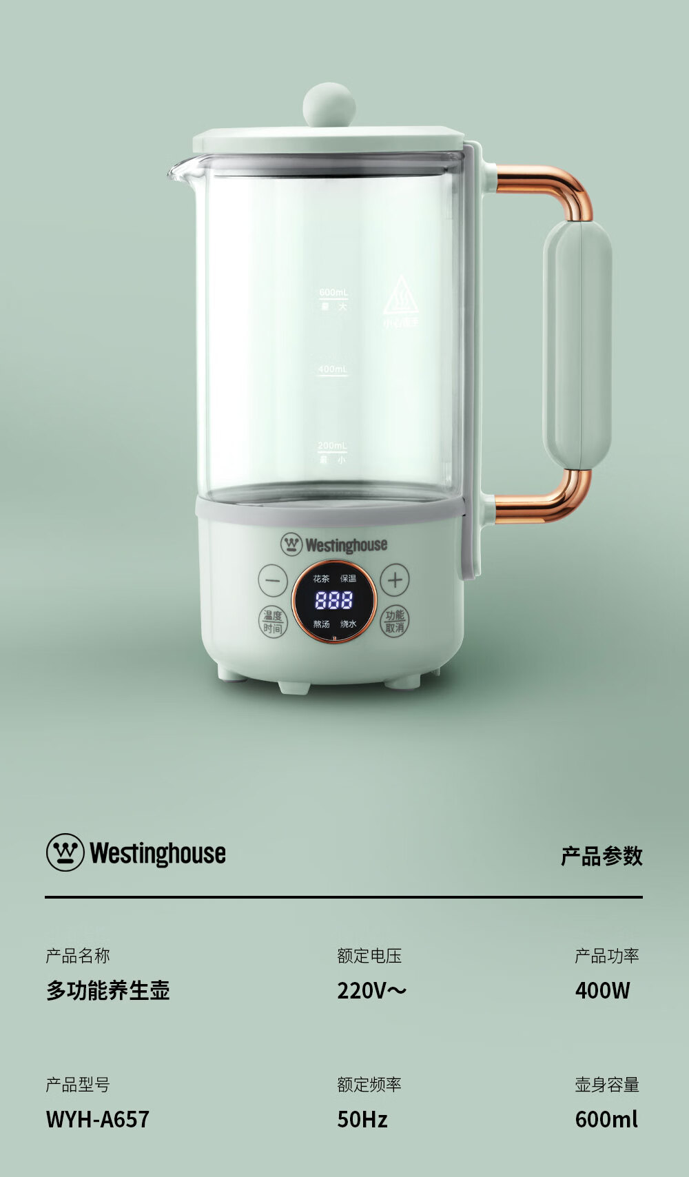 西屋Westinghouse-多功能电水壶(养生壶)WYH-A657 600ml(单位:台) 灰湖绿