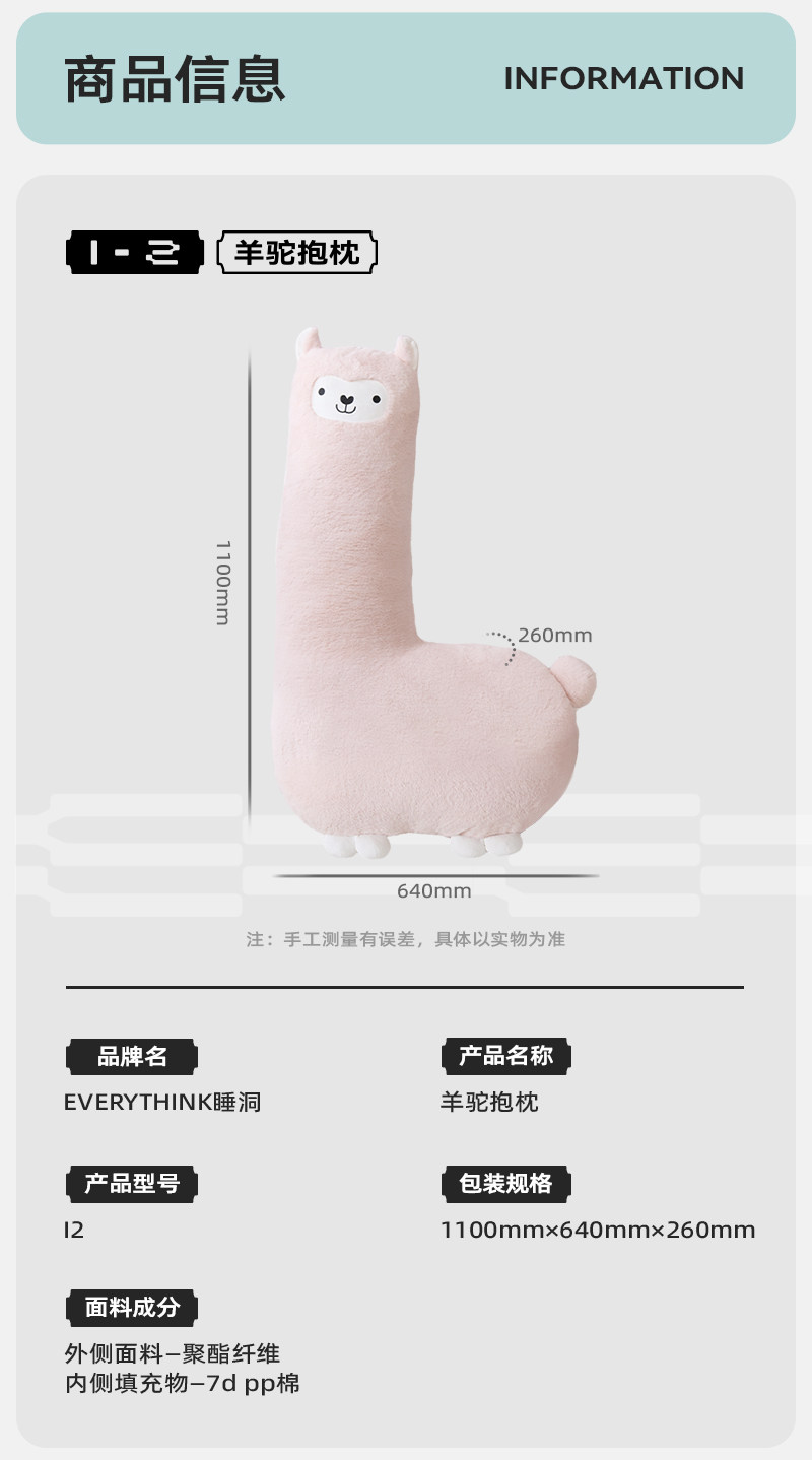 睡洞(EVERYTHINK) 羊驼抱枕 I2 110*64*26cm 奶白色(单位:个)