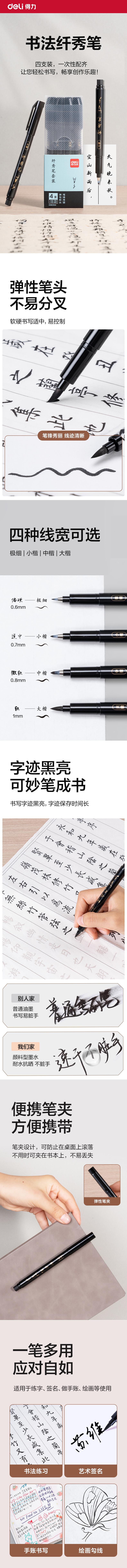 得力(deli) 纤秀笔套装 HW204 4支/盒 黑色(单位:盒)