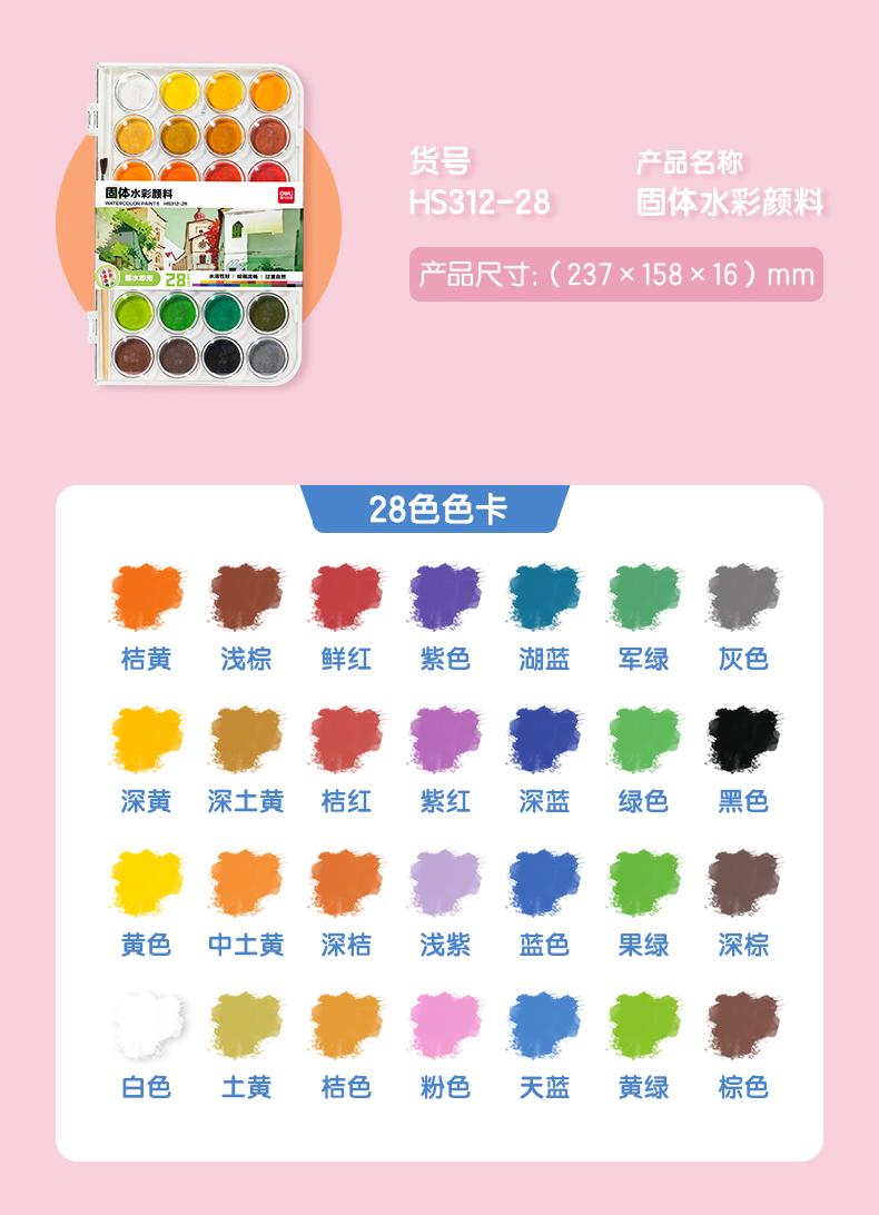 得力(deli) 基础款固体水彩 HS312-28 28色/盒 混色(单位:盒)