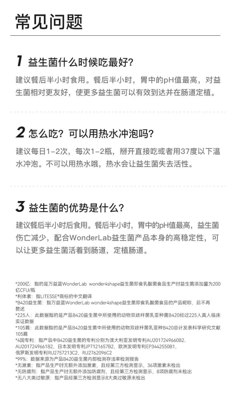 WonderLab 肠舒轻盈 套餐 B420益生菌 10瓶+膳食纤维固体饮料 青桔柠檬味 10条 水蓝色(单位:组)