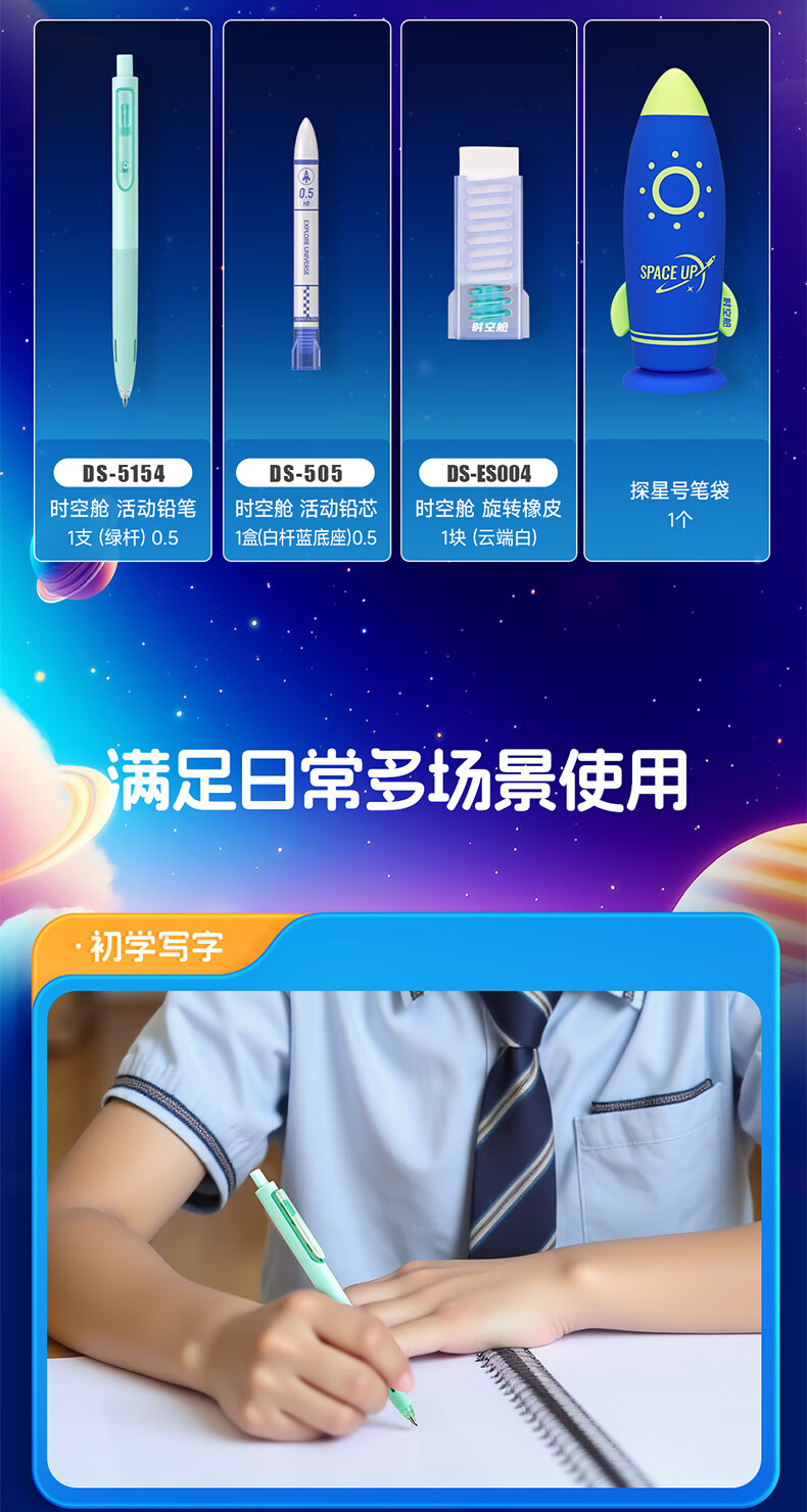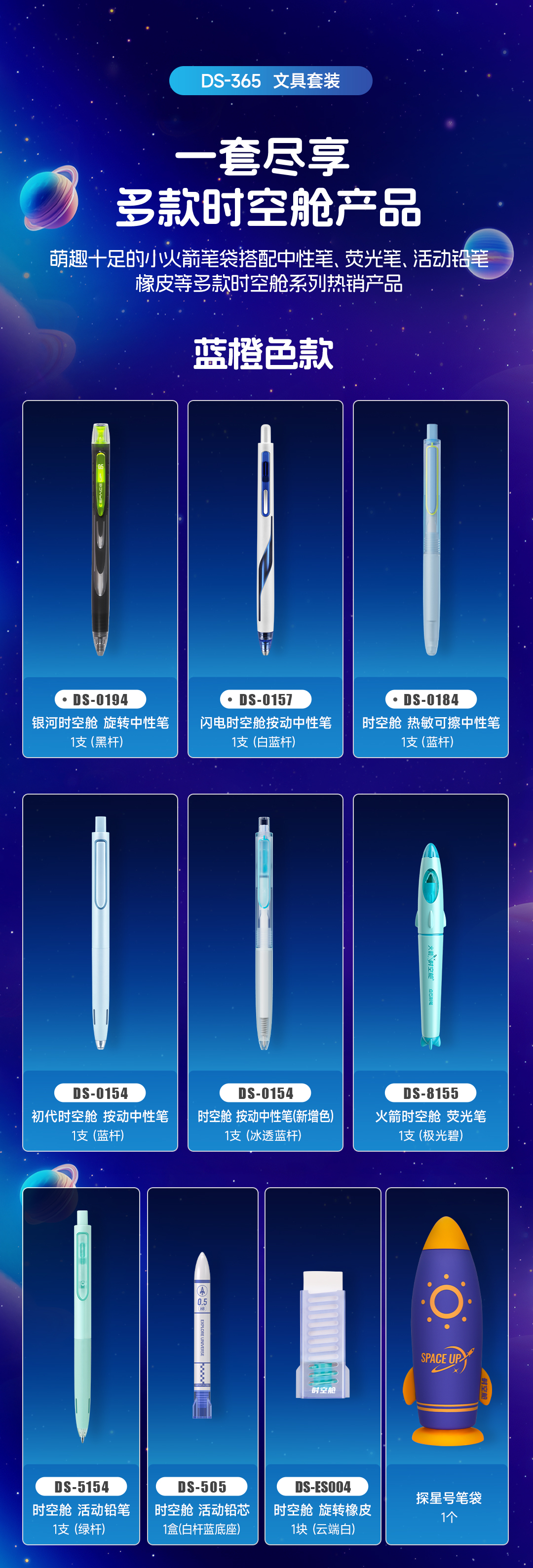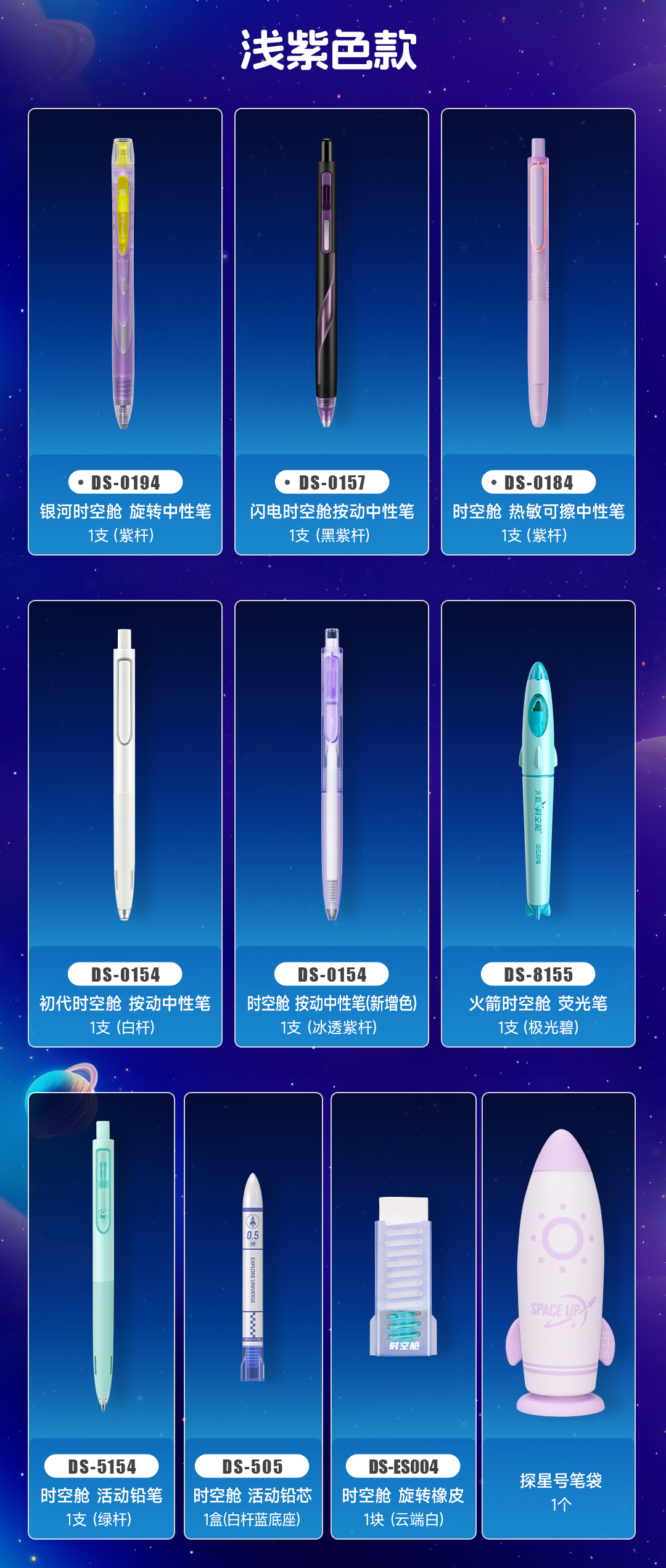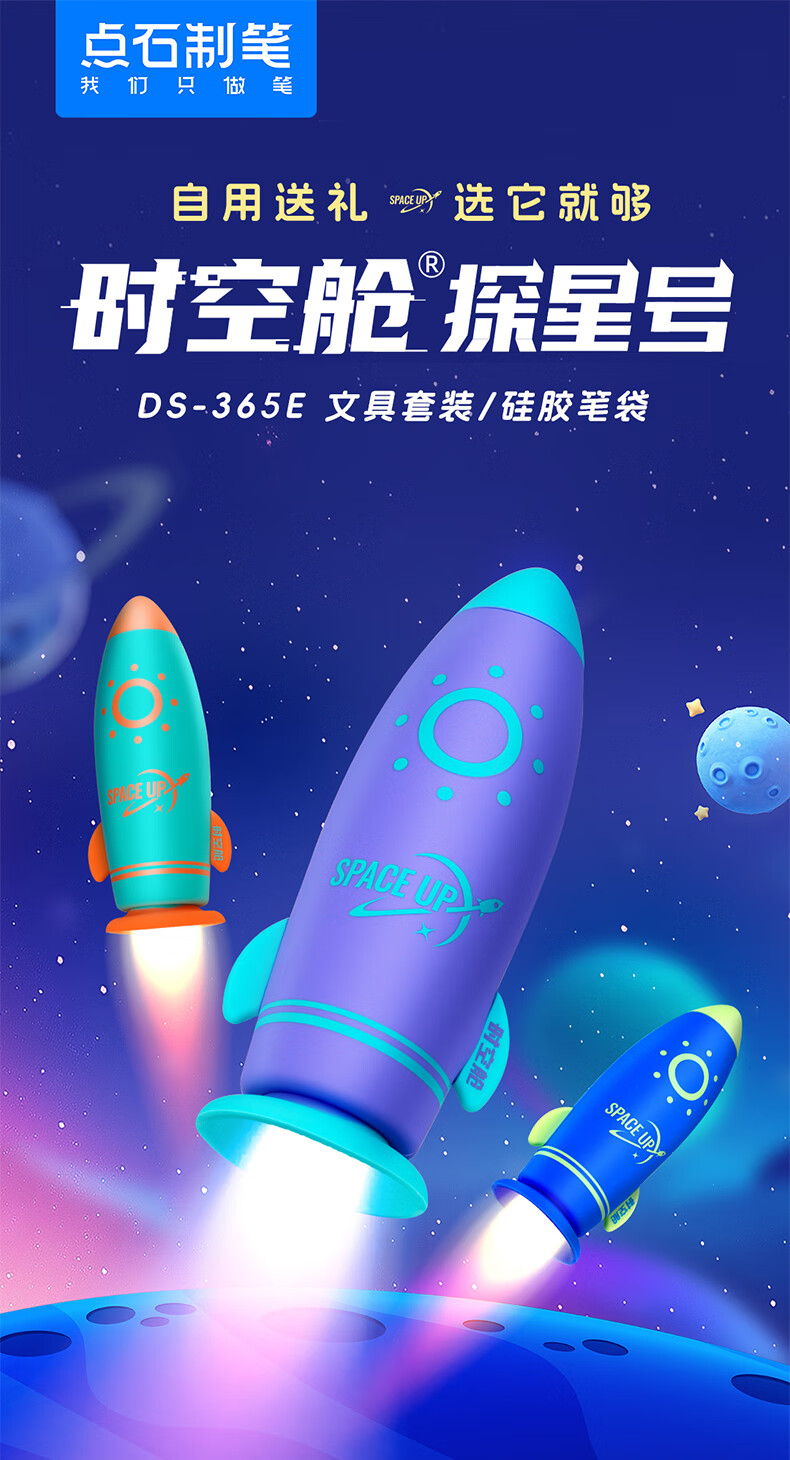 点石制笔 时空舱探星号硅胶笔袋中性笔文具套装 DS-365E 10件套 浅紫色(单位:套)