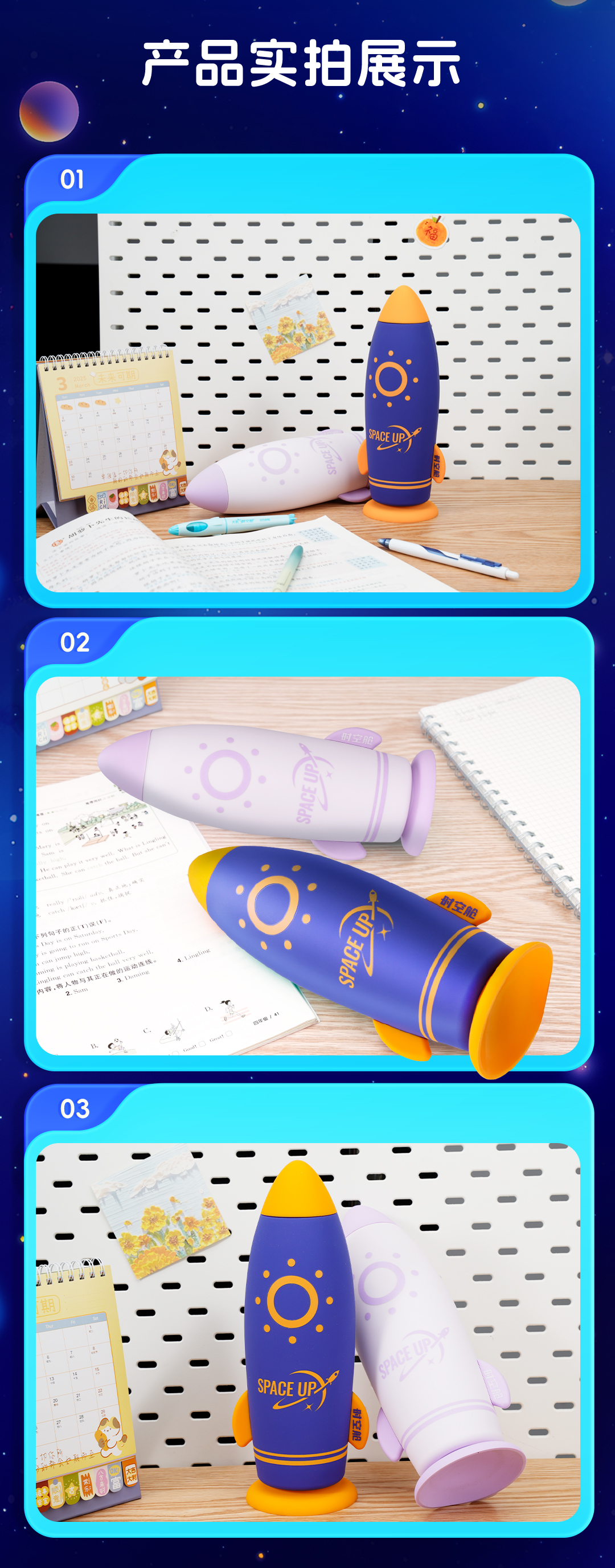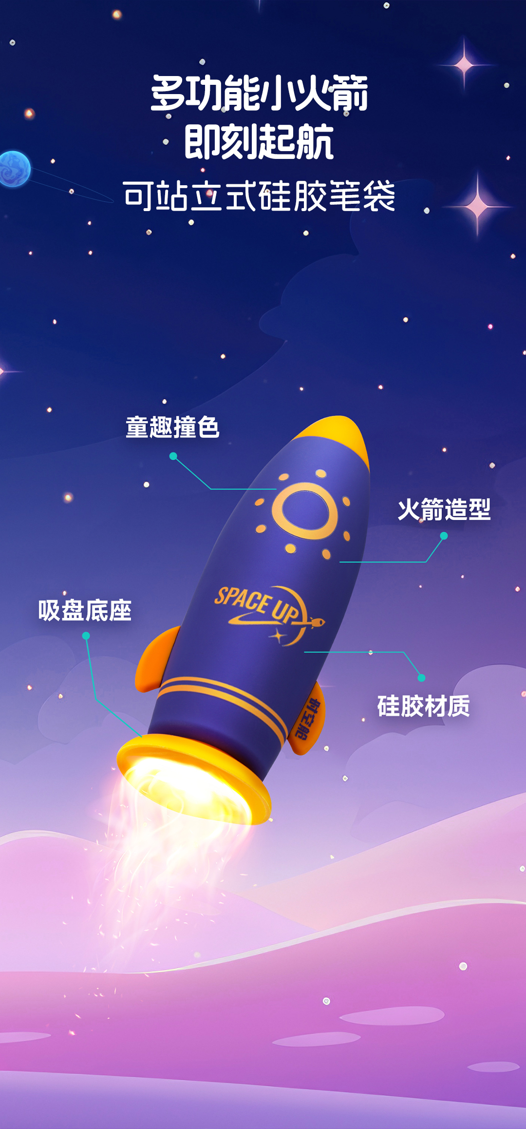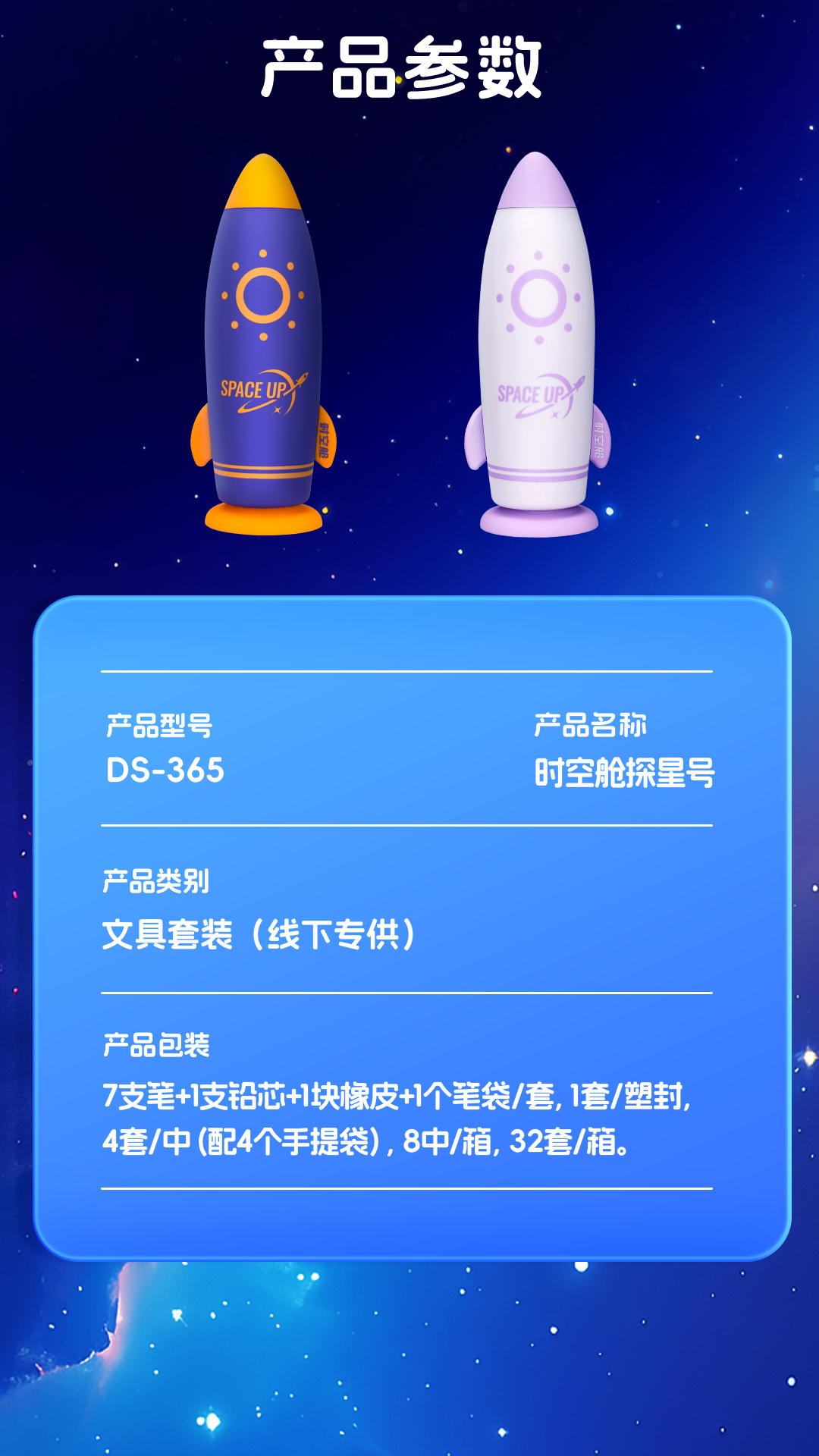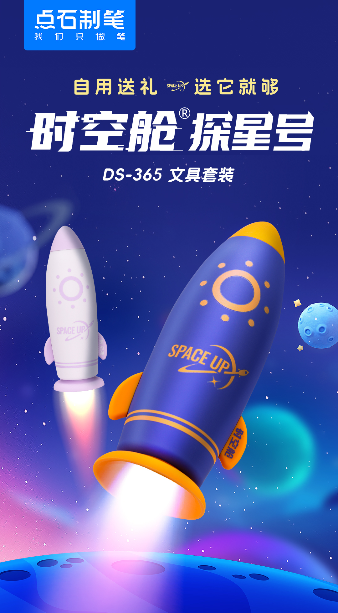 点石制笔 时空舱探星号硅胶笔袋中性笔文具套装 DS-365E 10件套 浅紫色(单位:套)