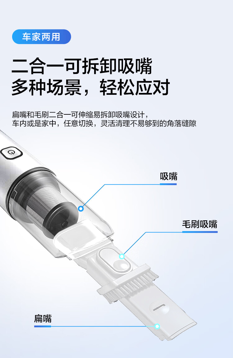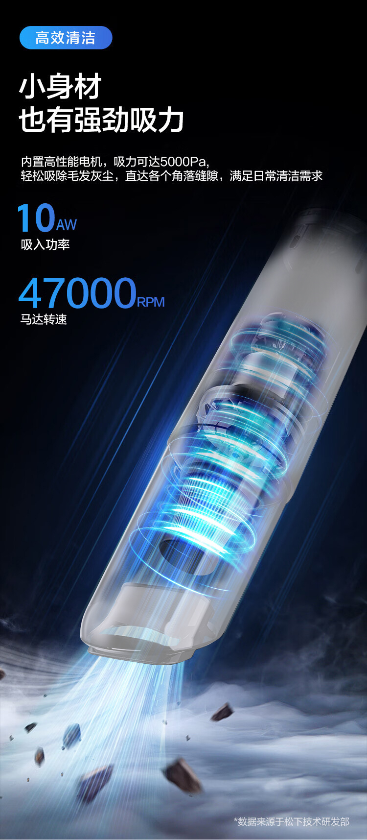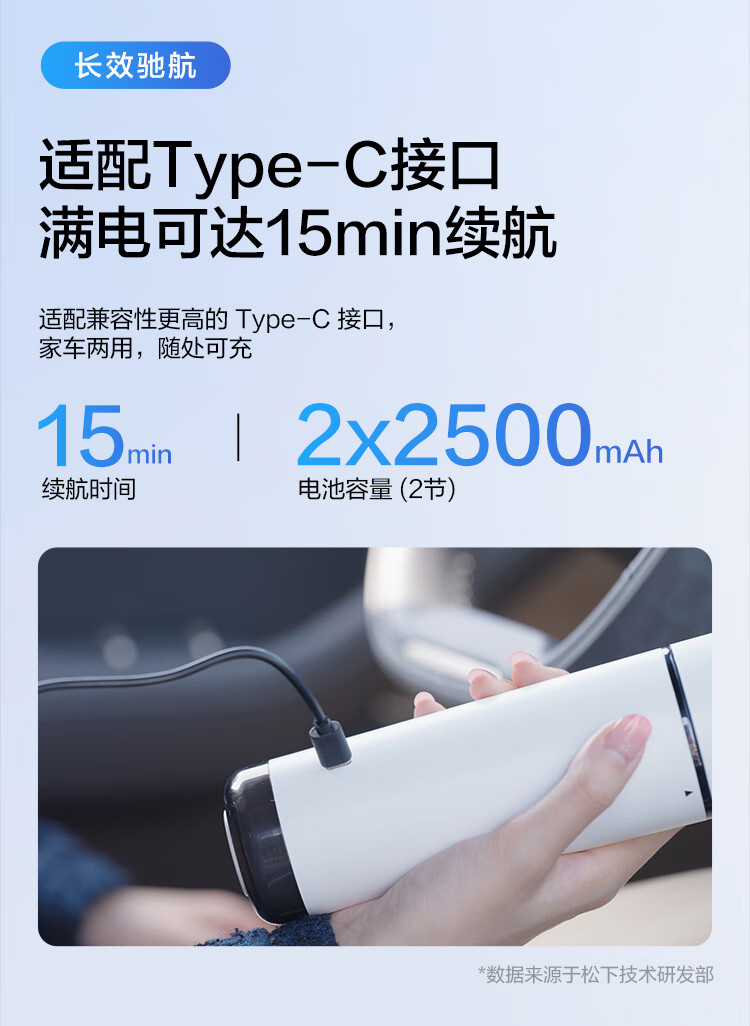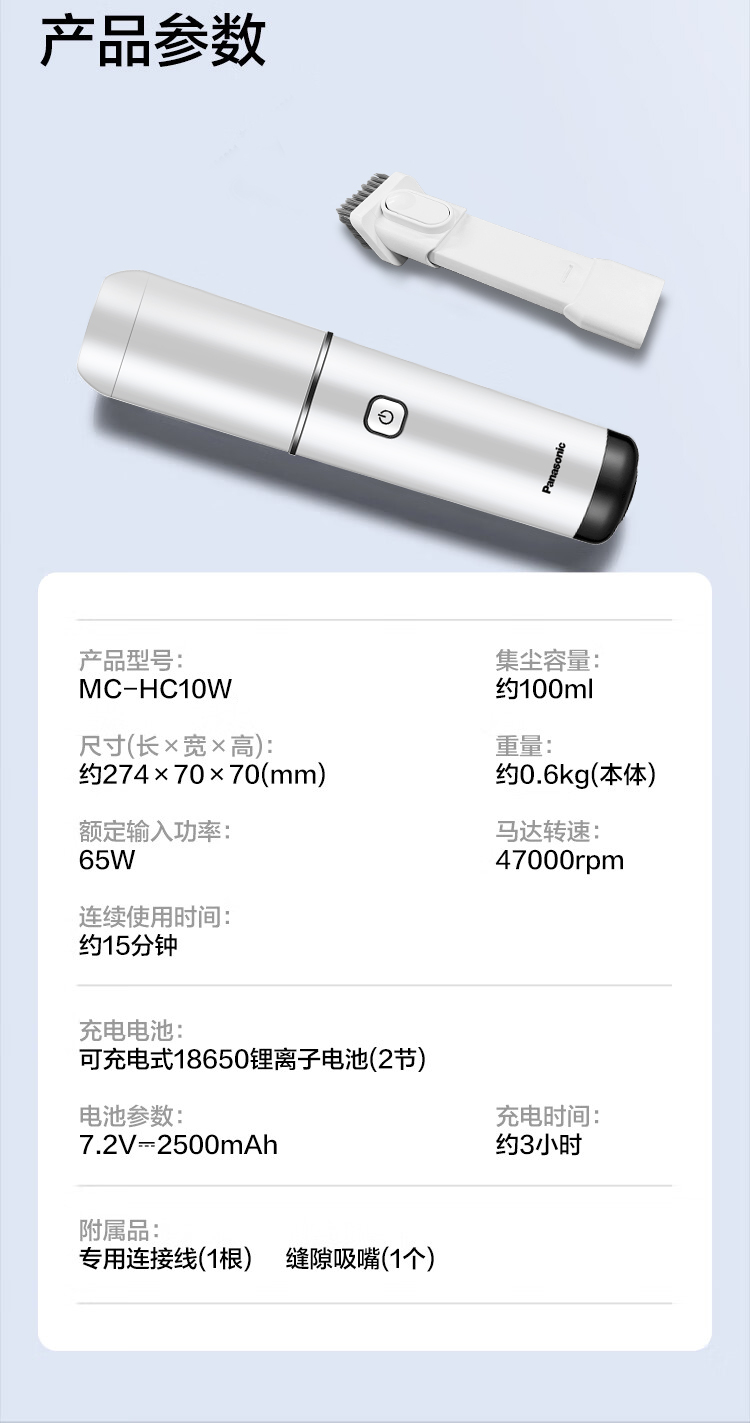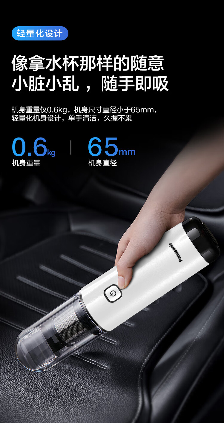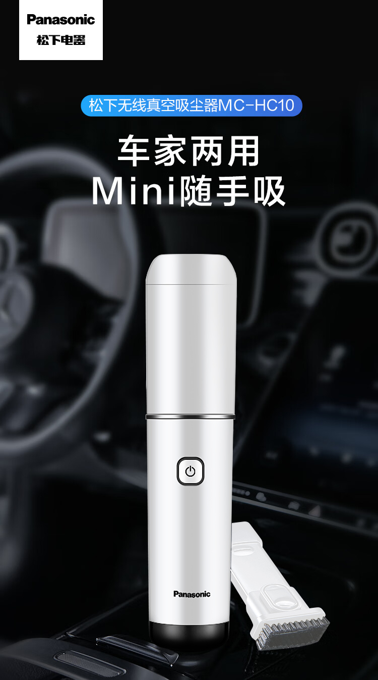 松下(Panasonic) 充电式真空吸尘器 车家两用 MC-HC10W 额定功率65W 白色(单位:个)