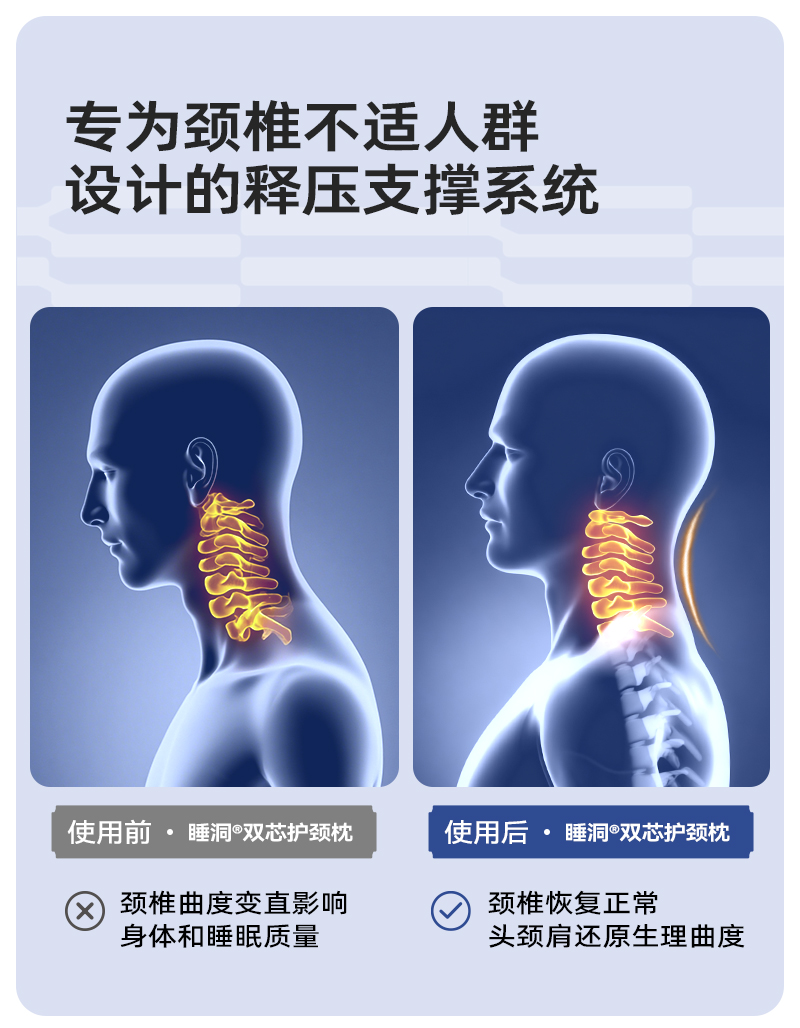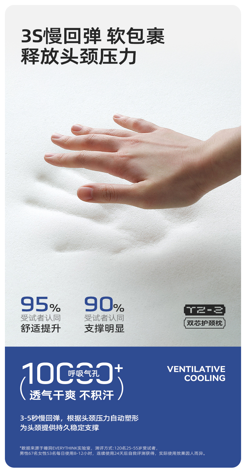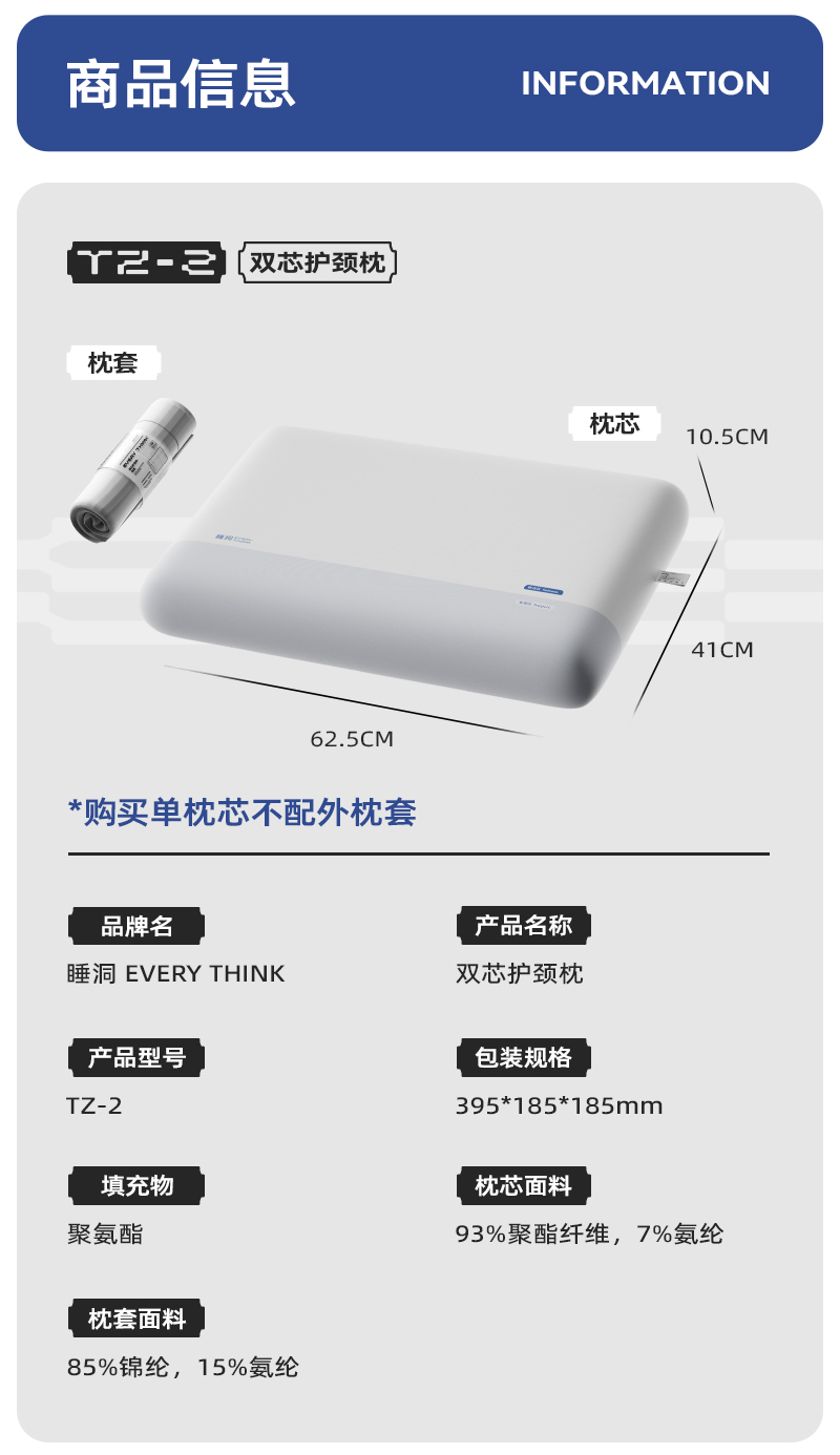 睡洞(EVERYTHINK) 双芯护颈枕 TZ2 枕芯62.5x41x10.5cm 白色(单位:个)