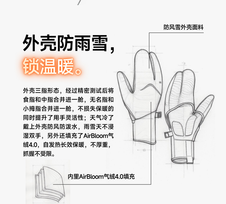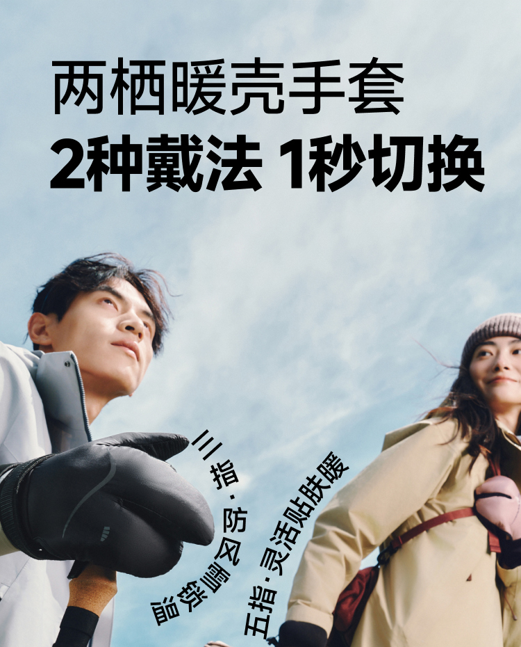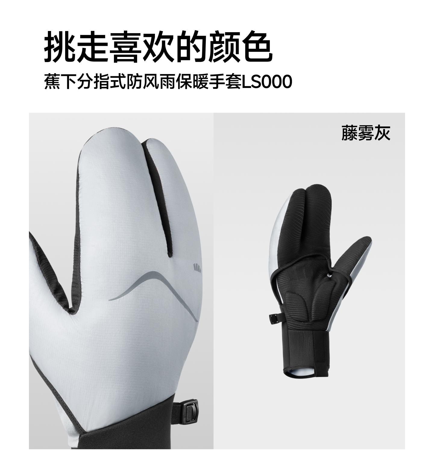 蕉下(beneunder) 分指式防风雨保暖手套 LS000 M码 漫暮黑(单位:双)