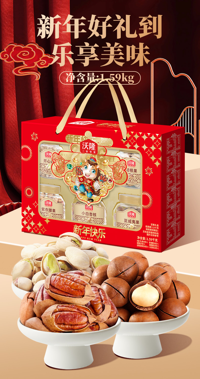 沃隆 /歌帝梵/皇冠/三只松鼠/纽仕兰 坚果巧克力曲奇肉肉礼牛奶组合 3769g+2.5L 混色(单位:组)