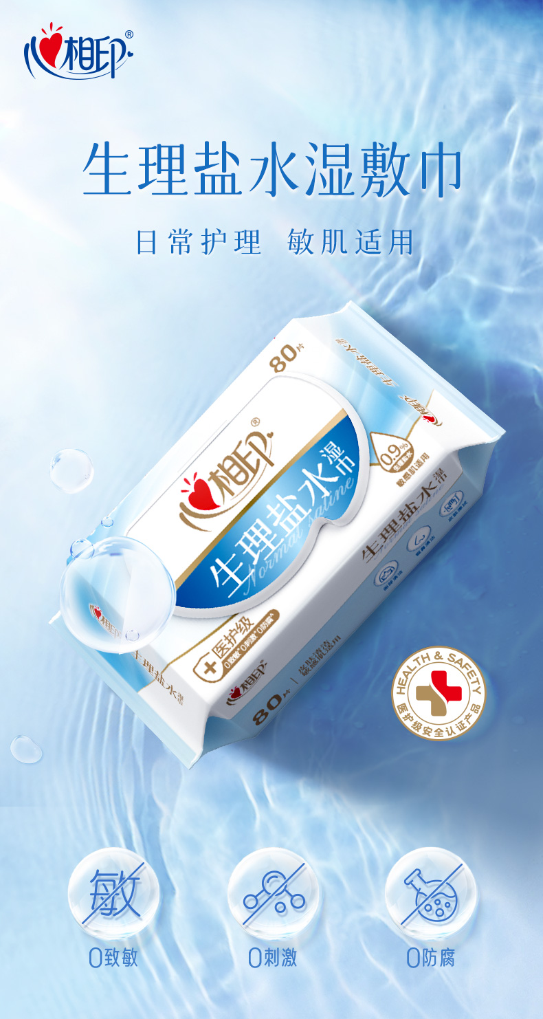 心相印 生理盐水80片装湿巾25-1版 XCP080 3包*1组 白色(单位:组)