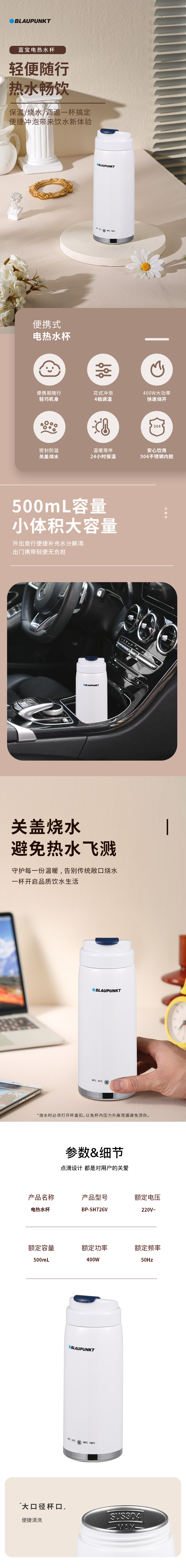 蓝宝(BLAUPUNKT) 电热水杯 BP-SH726V 500mL 白色(单位:台)