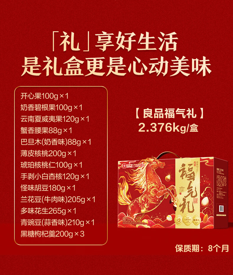 良品铺子 福气礼 坚果礼盒 2376g 红色(单位:盒)