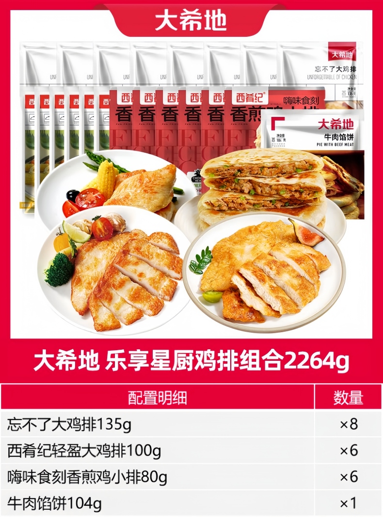 大希地 乐享星厨鸡排组合 DXD1006 2264g 混色(单位:袋)
