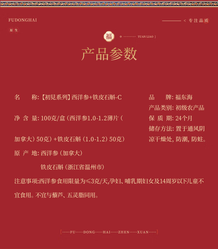 福东海(fudonghai) 西洋参+铁皮石斛 初見系列 100克/盒 红色(单位:盒)