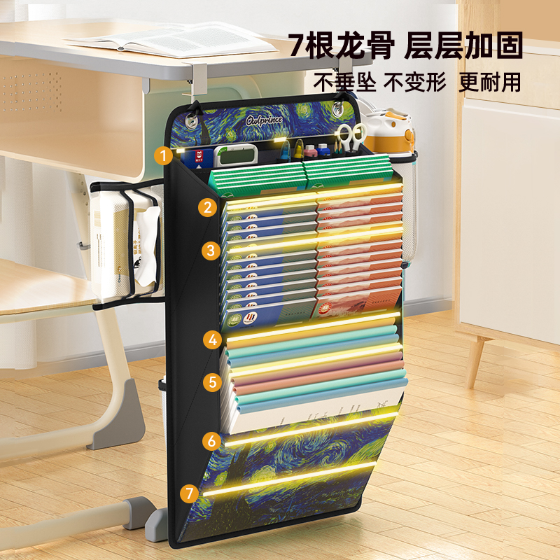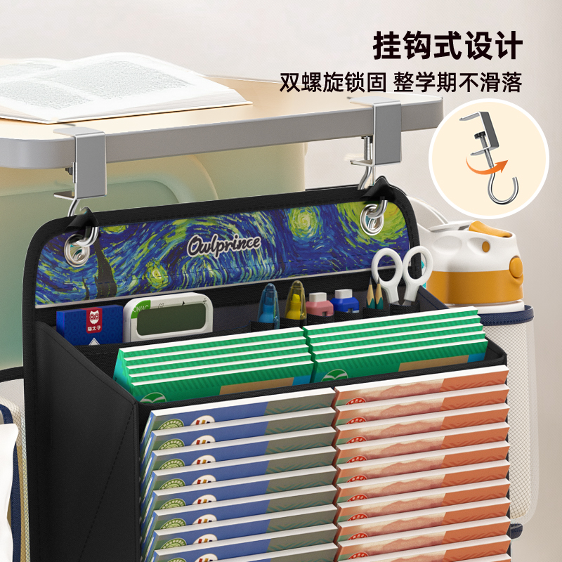 猫太子 大容量桌边挂书袋高中生初中生课桌收纳学生书桌课桌侧边收纳袋 10114M9219C 0.55KG 黑色(单位:套)