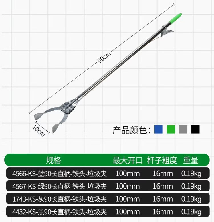 驰色 0724-XD-绿把方管黑胶头垃圾夹 CS-CT 224 1把 无色(单位:把)