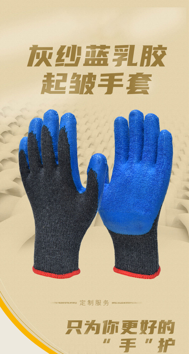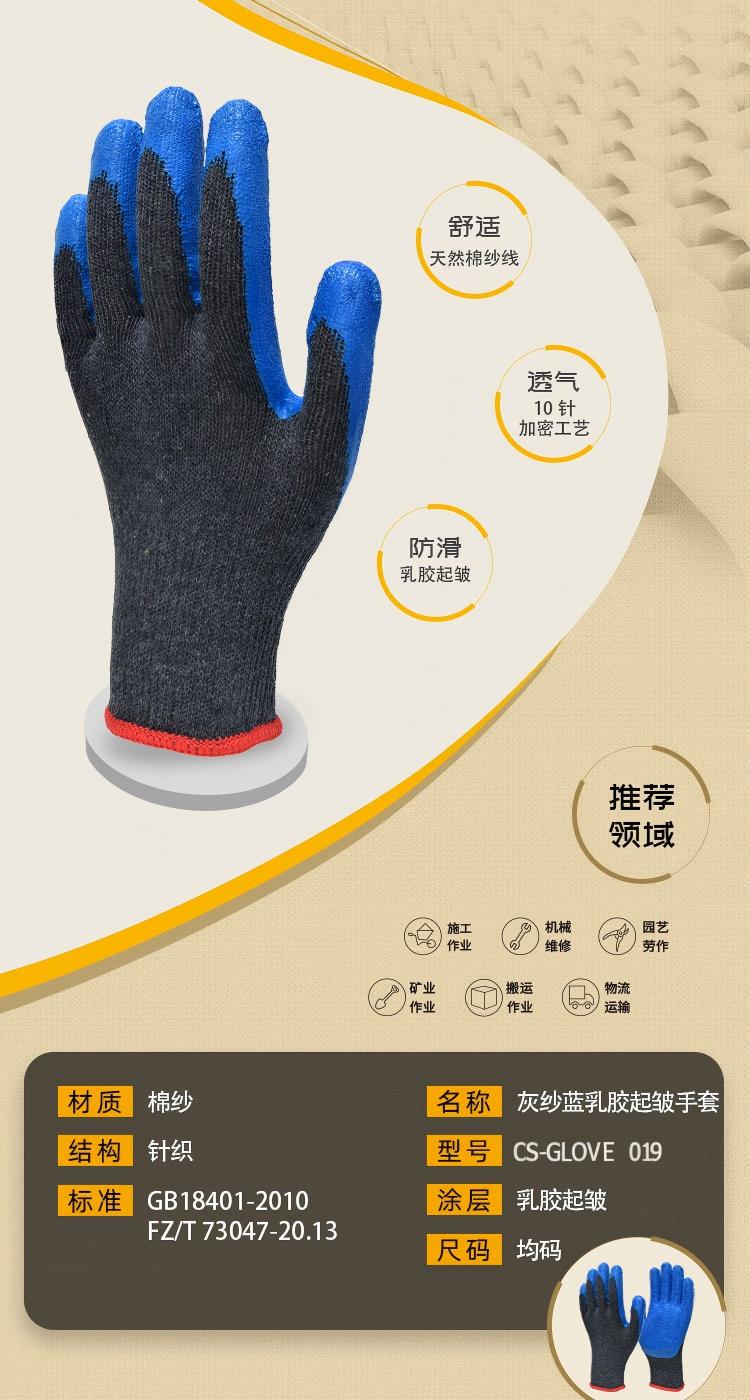 驰色 10针灰纱蓝乳胶皱纹手套 CS-GLOVE 019 12双/打 无色(单位:打)