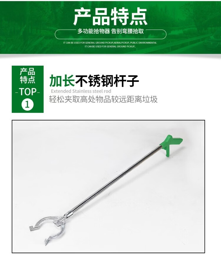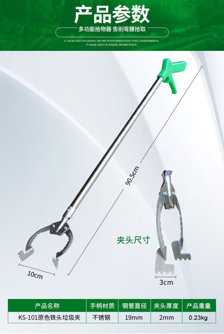 驰色 2505-KS-101原色铁头-加粗圆管弯柄垃圾夹 CS-CT 172 1个 无色(单位:个)