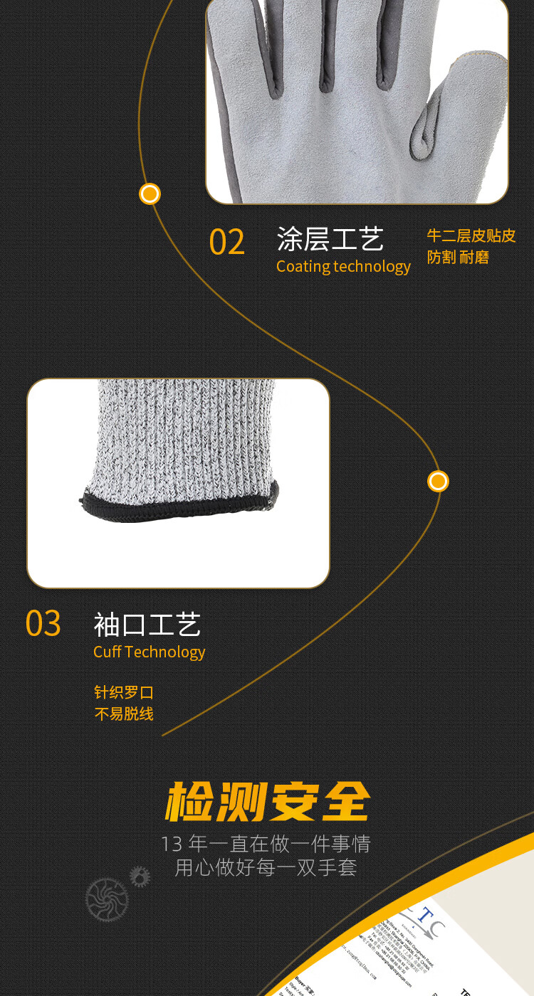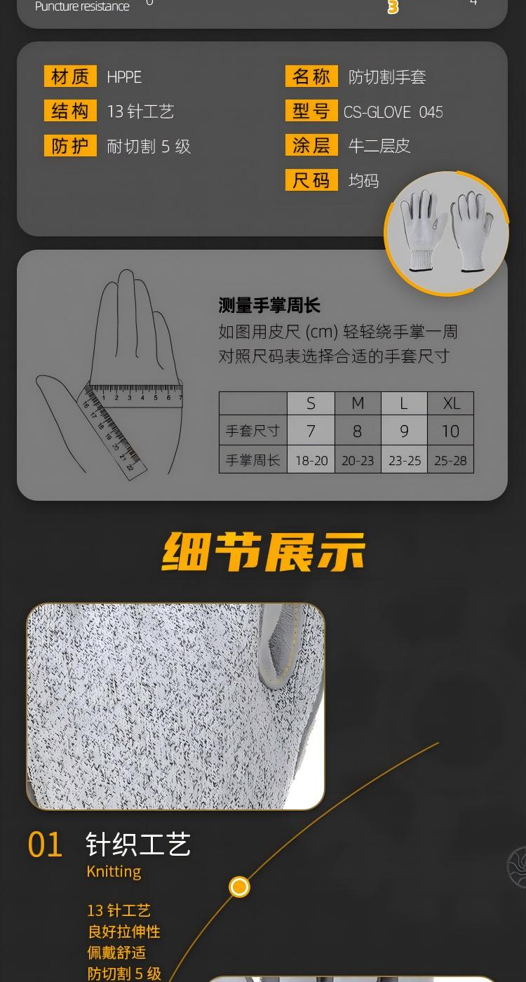 驰色 芳纶贴皮防刺防切割手套 CS-GLOVE 045 1双 无色(单位:双)