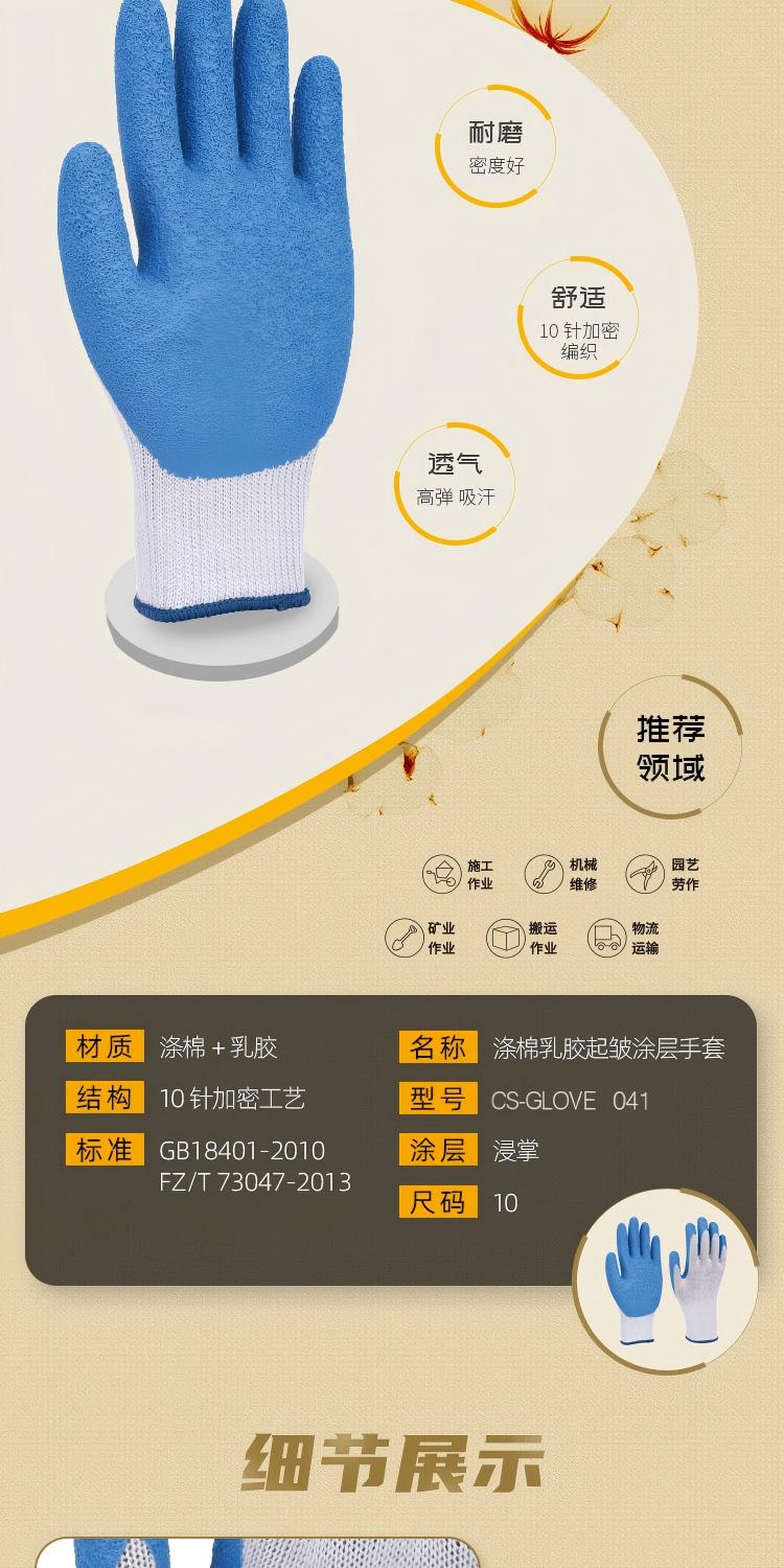 驰色 涤棉浸胶皱纹手套 CS-GLOVE 041 12双/打 无色(单位:打)