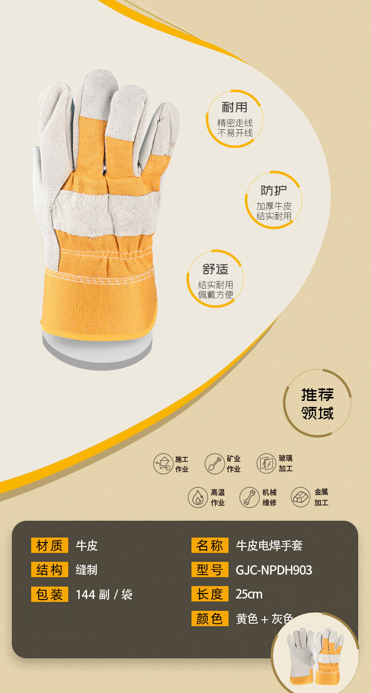 驰色 半皮牛皮电焊手套 CS-GLOVE 033 1双 无色(单位:双)