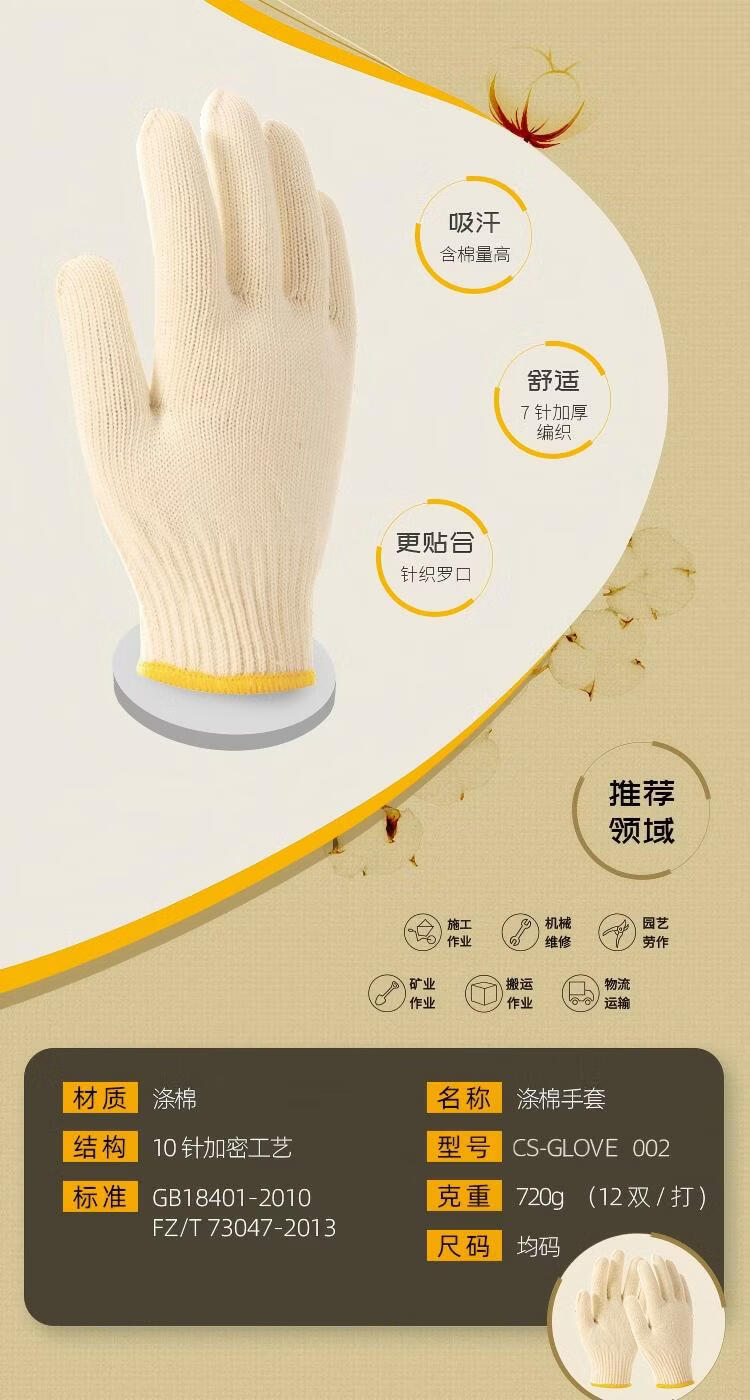 驰色 10针涤棉720克黄边手套 CS-GLOVE 002 12双/打 无色(单位:打)