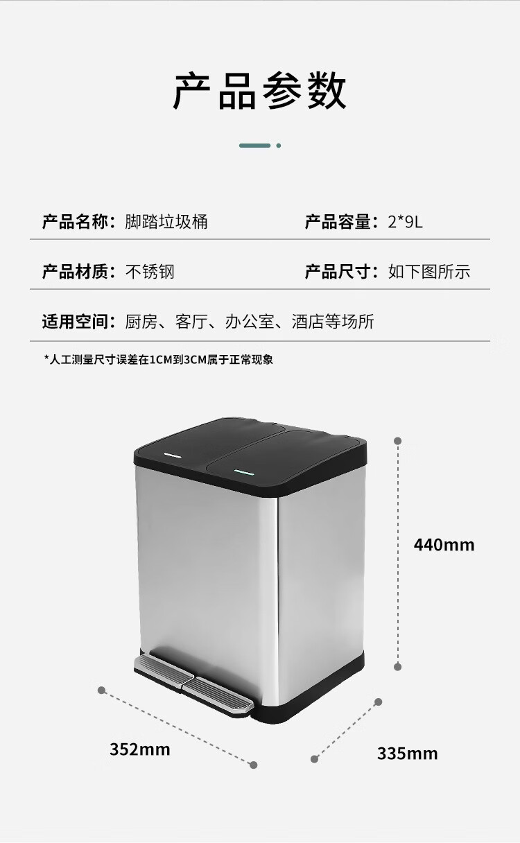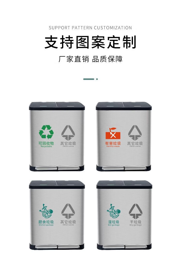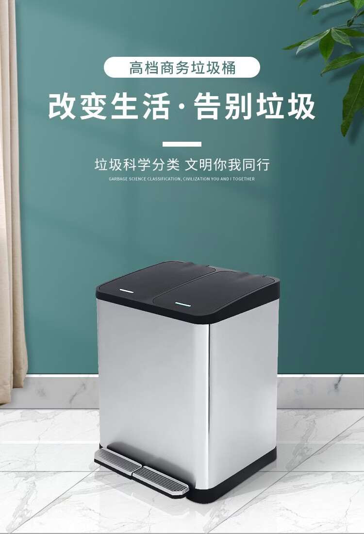 驰色 不锈钢分类垃圾桶CLF27H-3一分三桶塑料盖 CS-TC 016 1套 无色(单位:套)