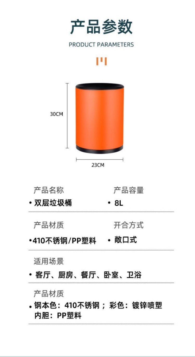 驰色 CLD8S双层小圆桶垃圾桶 CS-TC 017-5 1个 绿色(单位:个)