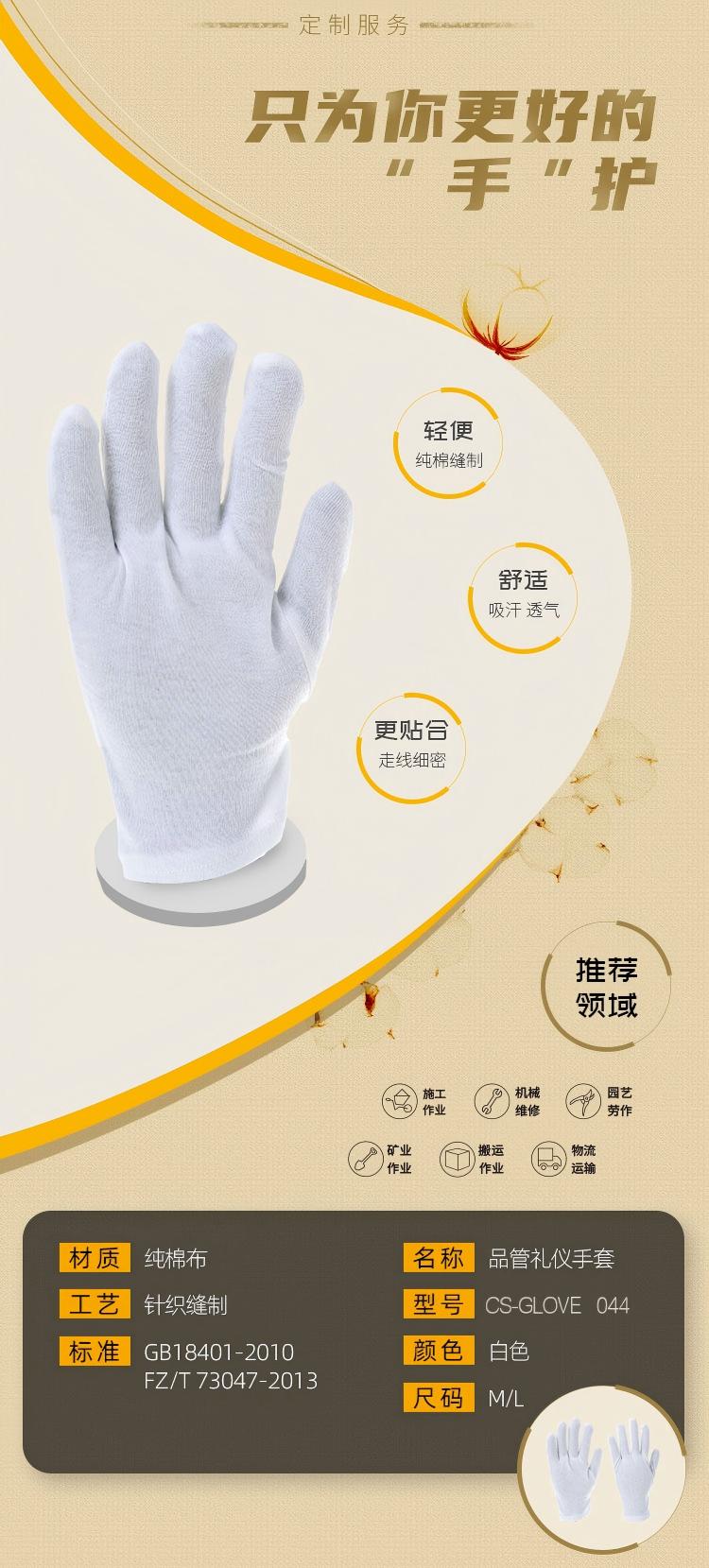 驰色 纯棉款白色礼仪手套 CS-GLOVE 044 12双/打 白色(单位:打)