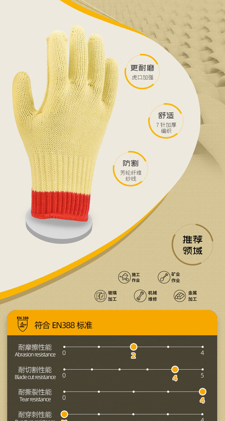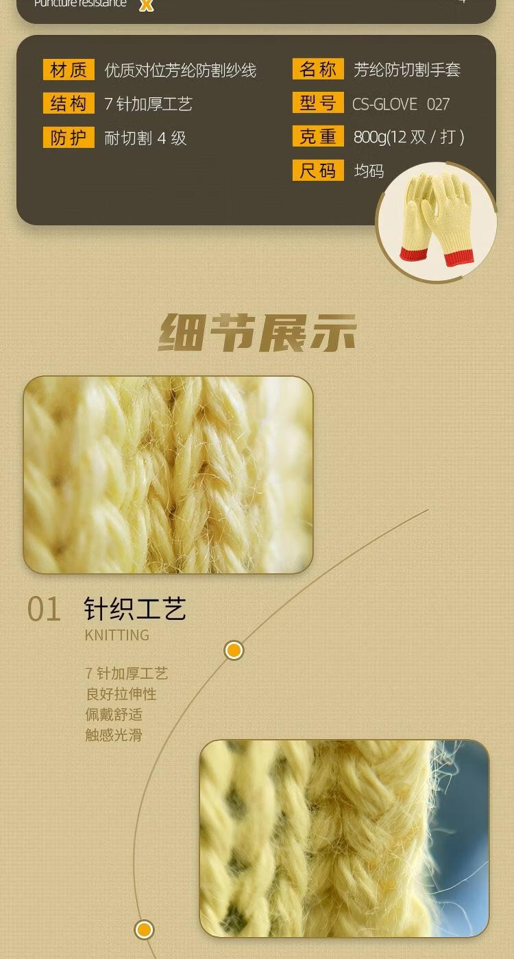 驰色 7针芳纶防切割手套 CS-GLOVE 027 1双 无色(单位:双)