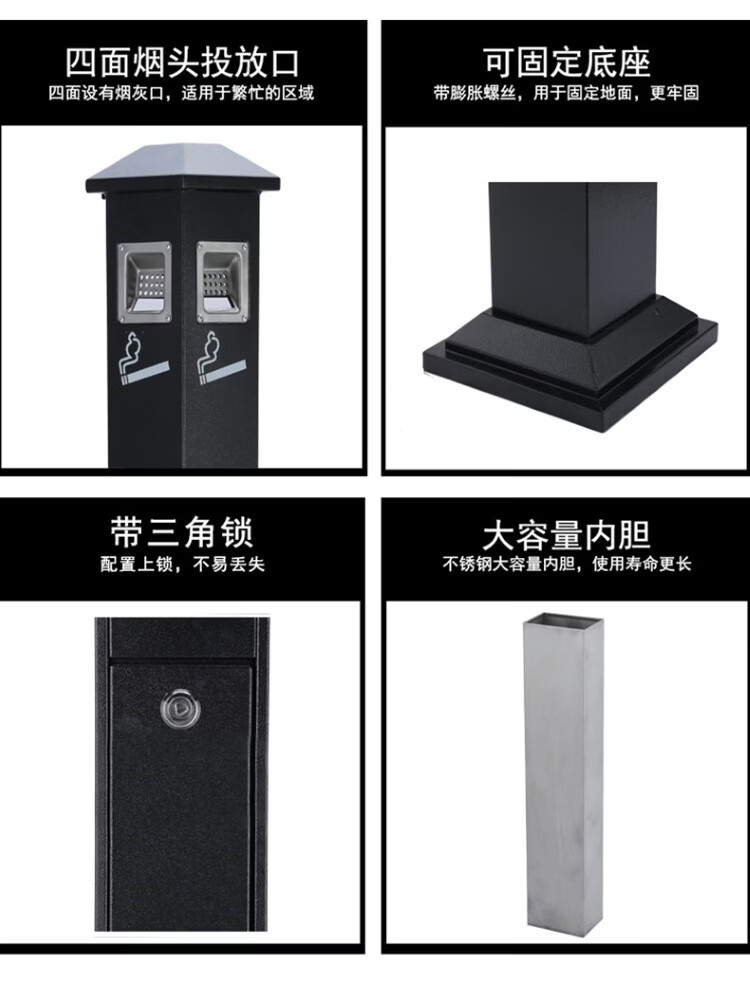 驰色 户外烟头收集器四方平头烟柱 CS-TC 024 1个 无色(单位:个)