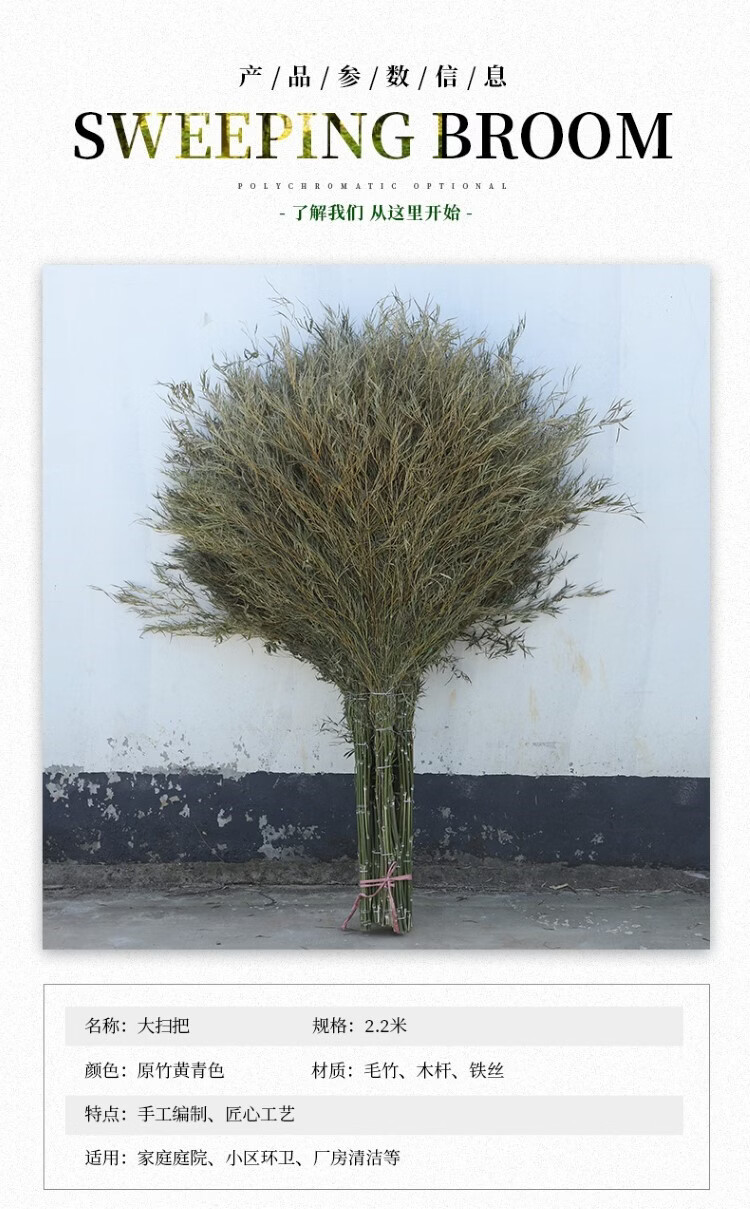 驰色 脱叶竹扫把4斤一体式1.8m CS-CT 023 1把 无色(单位:把)