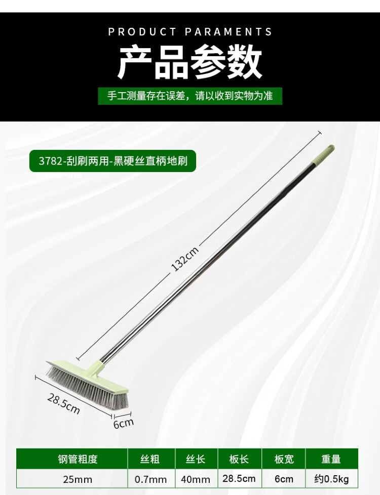 驰色 3782-刮刷两用-黑硬丝直柄地刷 CS-CT 175 1把 黑色(单位:把)